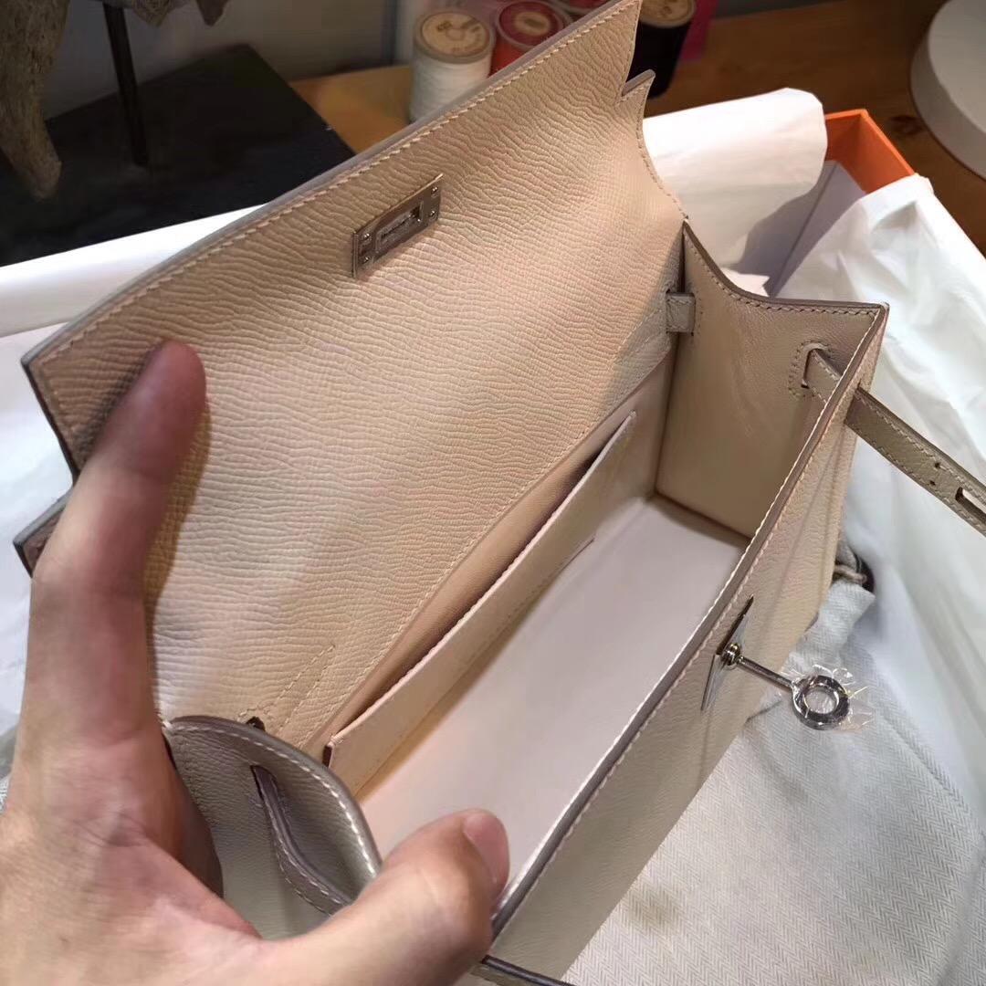 愛馬仕Hermes迷你凱莉包价格Mini kelly epsom CK18 Etoupe大象灰銀扣