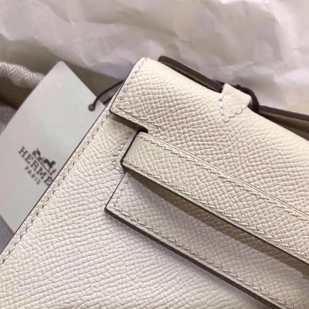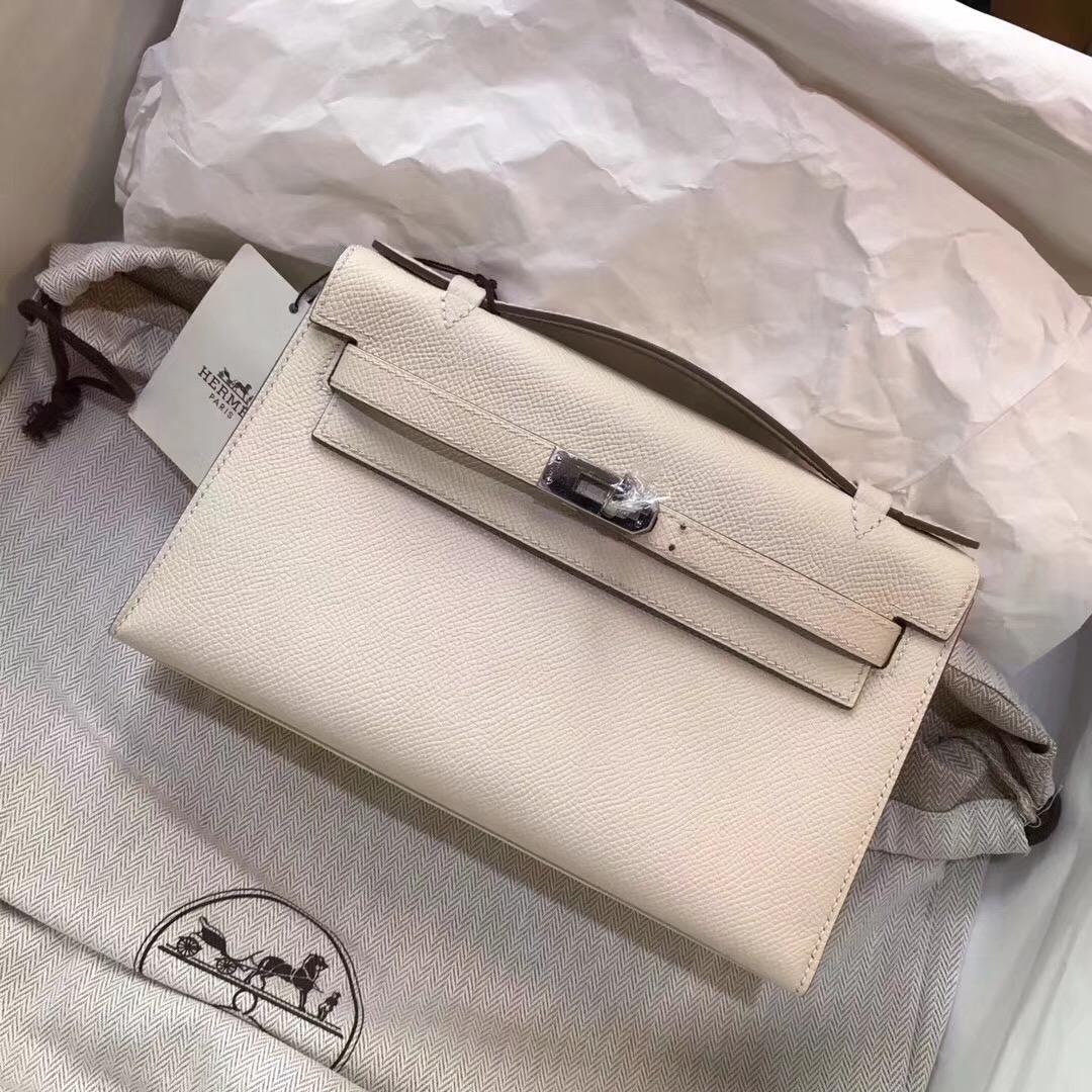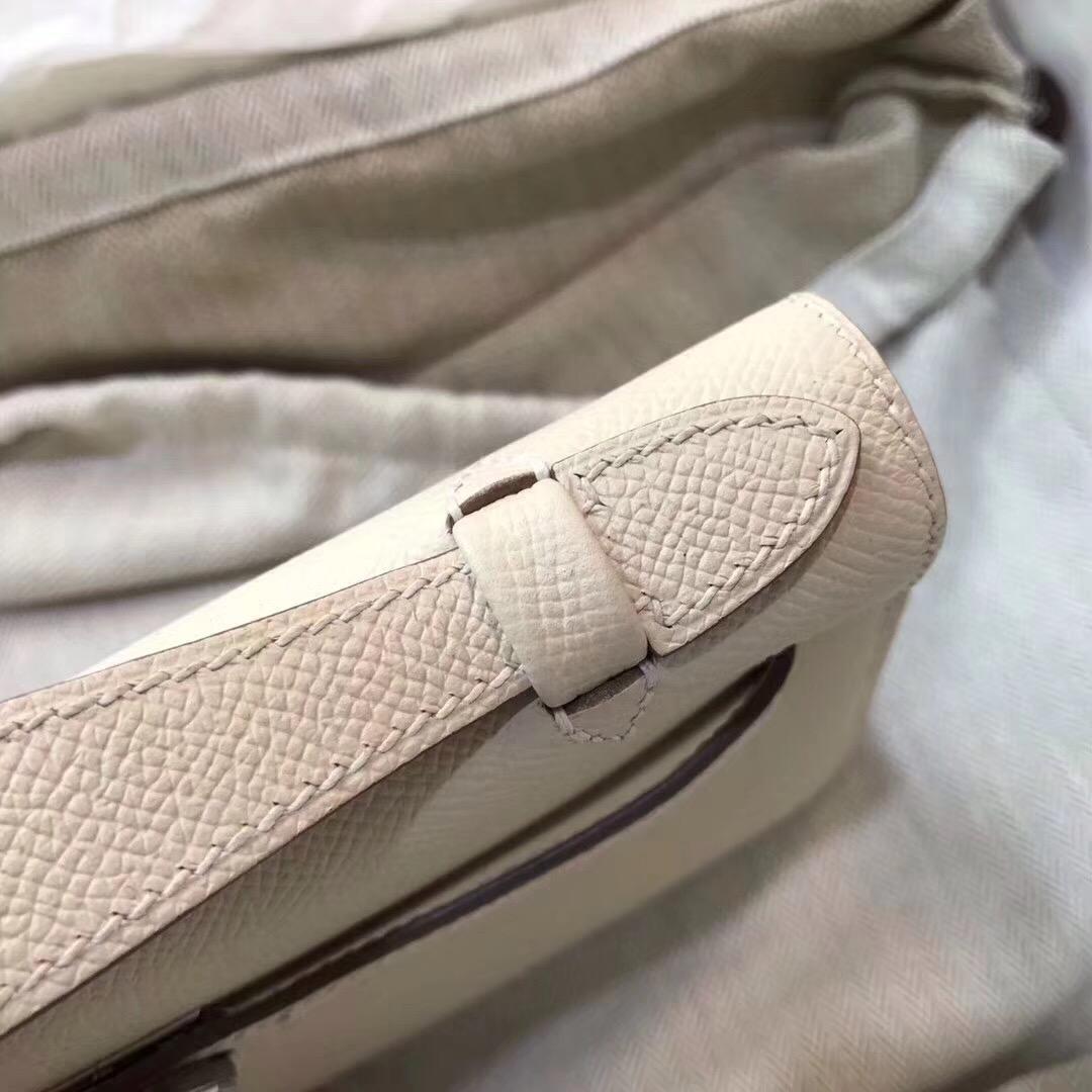 愛馬仕 Mini Kelly Epsom 奶昔白銀扣 CK10 Craie GHW 氣質素色系列 淤泥不染的顏色 宴會手拿包。