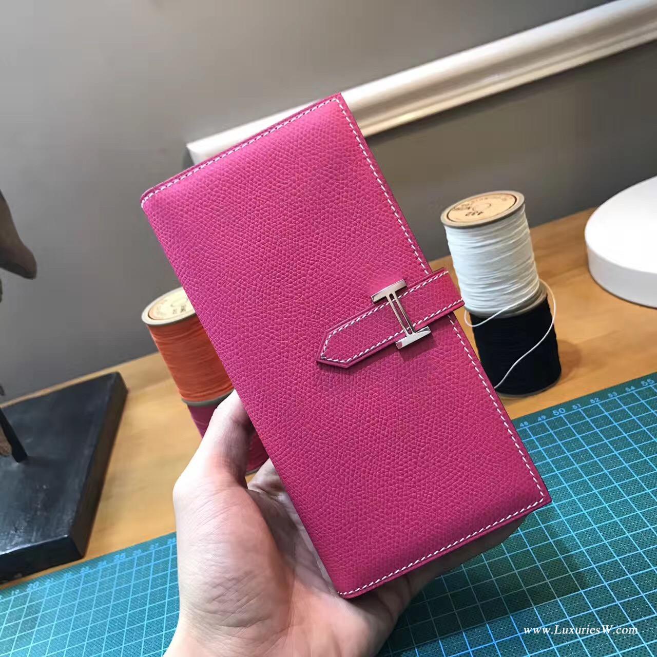 愛馬仕長款錢包 Hermes Bearn 兩折錢包Epsom 5P Pink 櫻花粉銀扣