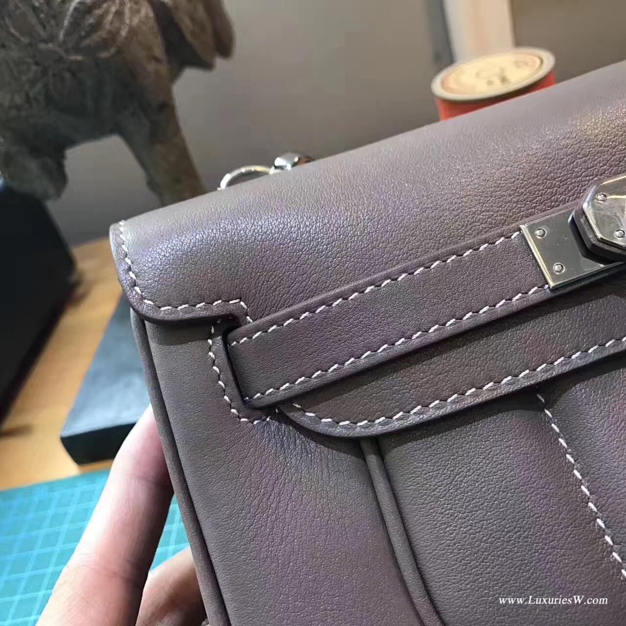愛馬仕純手縫Hermes Berline Swift Mini 8F ETAIN 錫器灰 銀扣