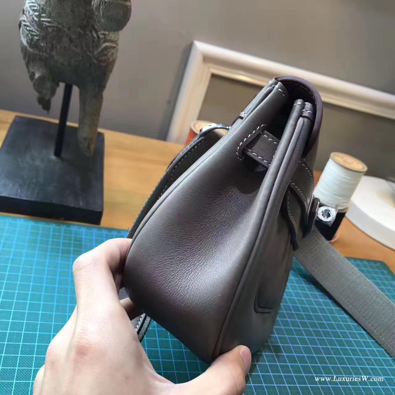 愛馬仕新款單肩包 Berline Swift CK18 Etoupe 大象灰銀扣