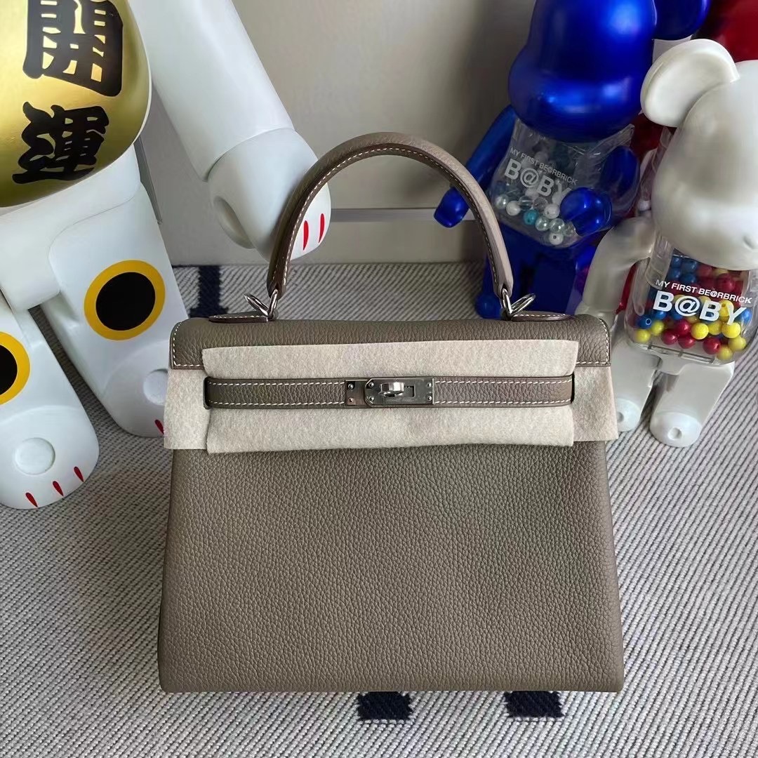 臺灣桃園市桃園區 愛馬仕女包什麽顏色最好賣 Hermes Kelly 25cm Togo CK18 Etoupe 大象灰 銀扣 Togo leather 全手工蜜蠟線縫製