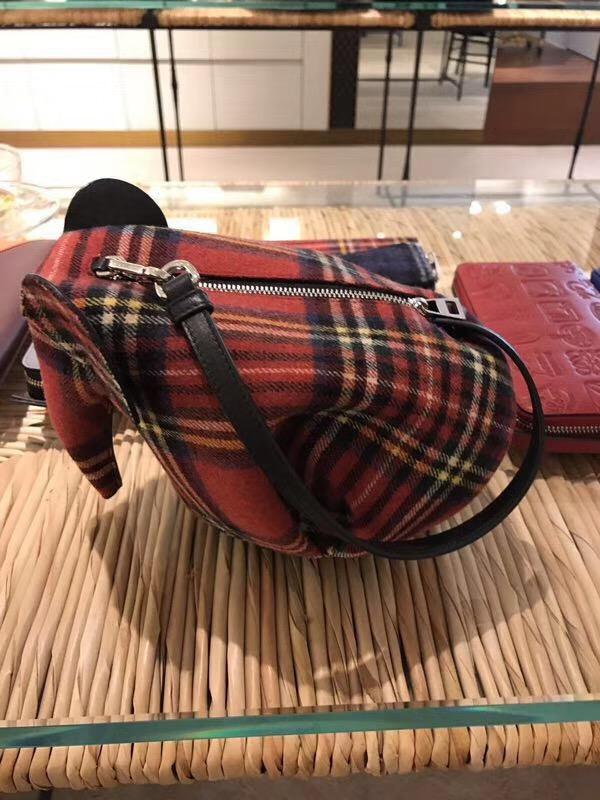 Elephant-shaped mini bags in printed wool and calf leather with adjustable strap, complete with a long trunk and dot-perforated “eyes.” Key features: Black lacquered edging, polished silvertone hardware, Detachable, adjustable flat leather strap and Top zip closure.