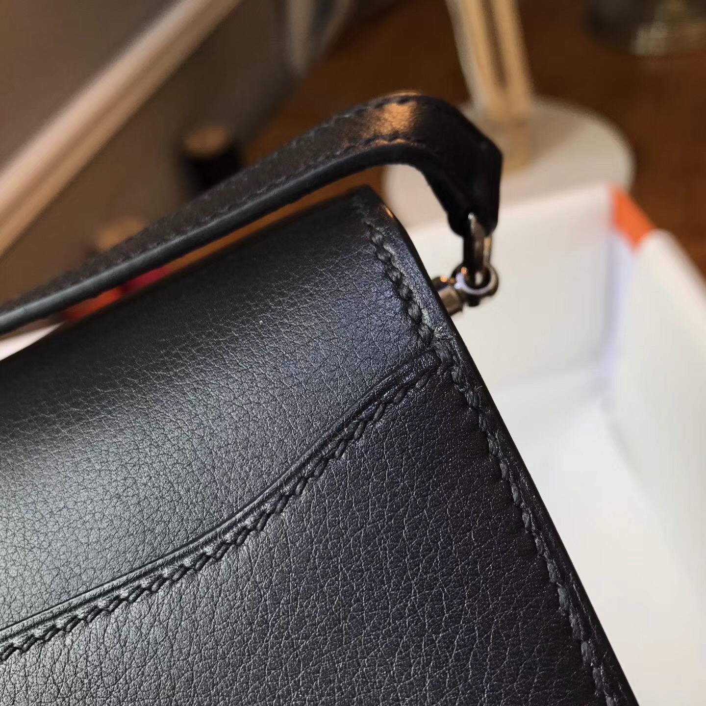 愛馬仕豬鼻子包 Roulis Swift CK89 Nior黑銀 黑色最經典帥氣 全手工蠟線縫製