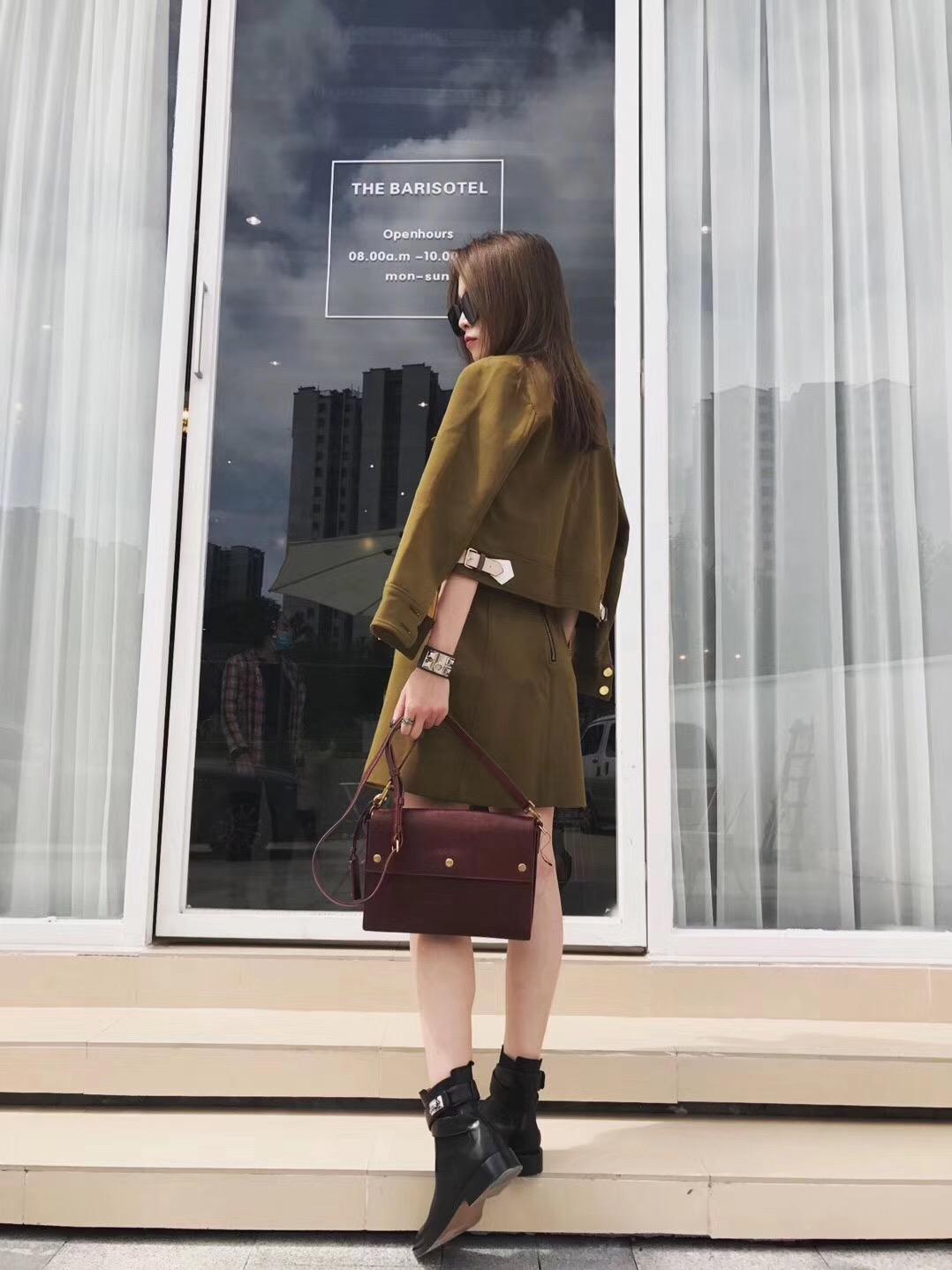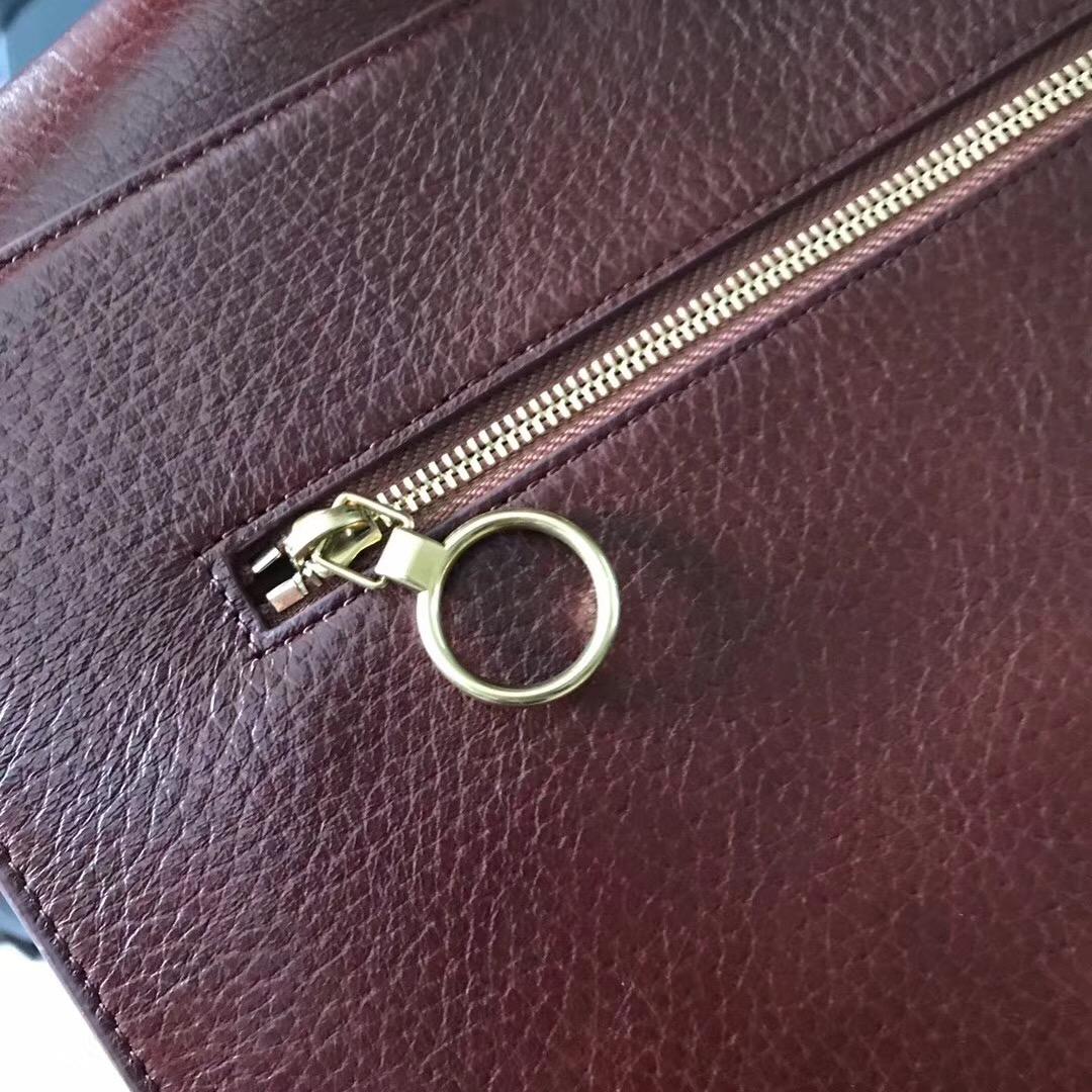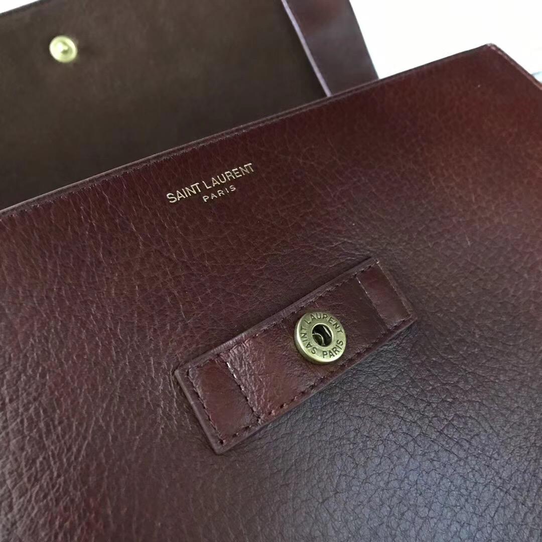 Supple leather bag with front flap, adorned with a removable and adjustable leather strap, Saint Laurent engraved gold-toned buttons and a removable leather label with interlocking YSL signature.