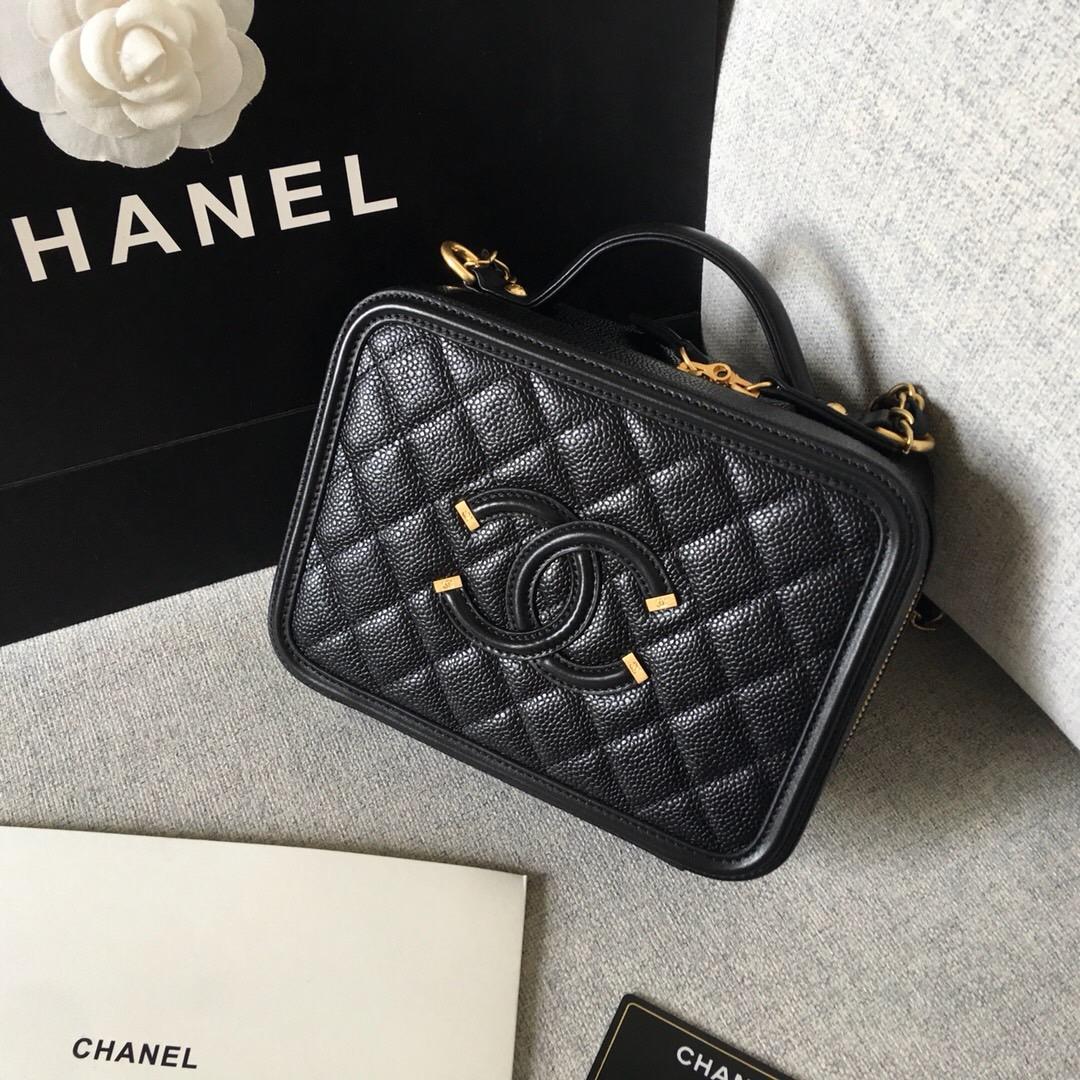 香奈兒中號 黑色顆粒壓花球紋小牛皮 化妝包 Vanity Case bag