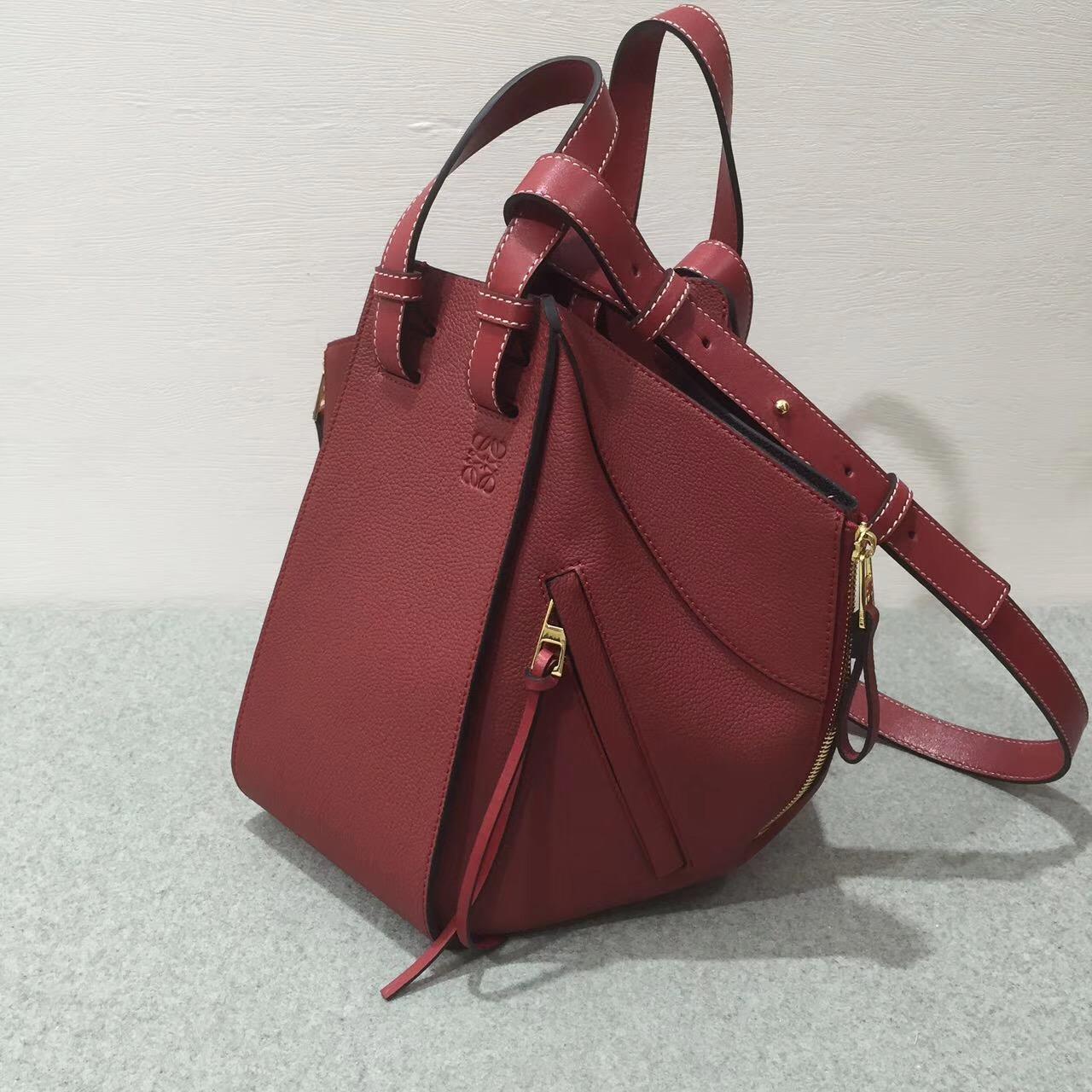 Loewe羅意威 Hammock Small Bag 顆粒小牛皮胭脂红 吊床包