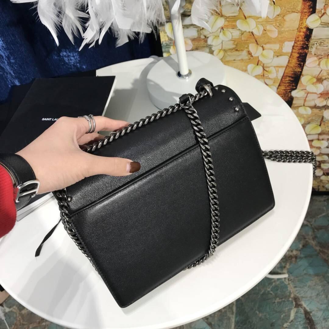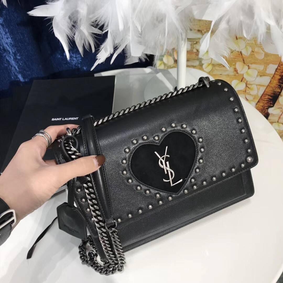 Saint Laurent 中號SUNSET MONOGRAM黑色真皮包釘黑色心型。