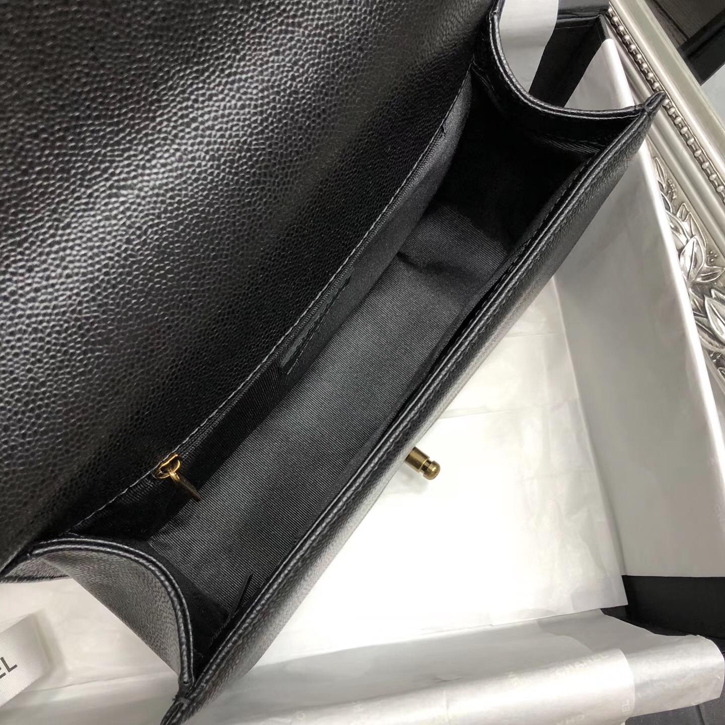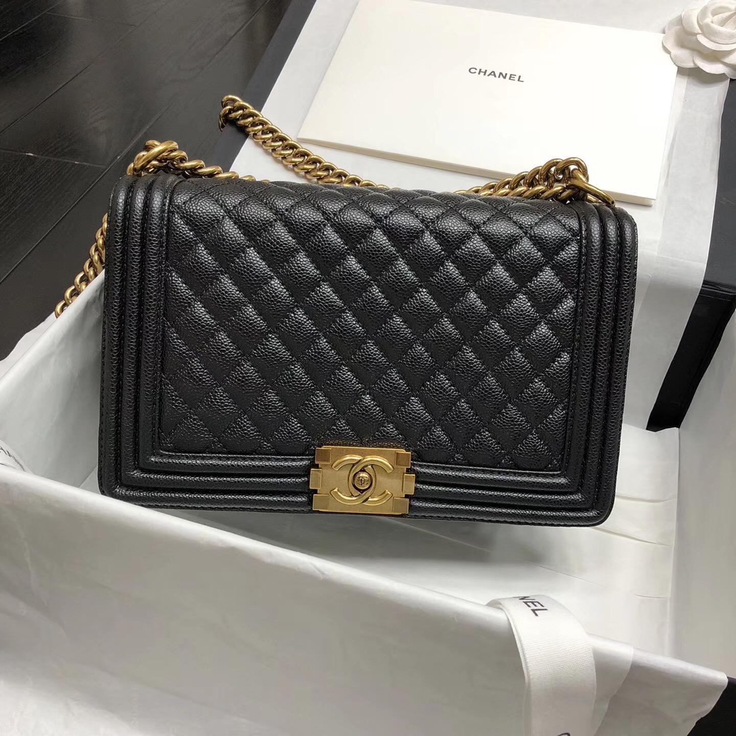Chane.中號Large Le boy bag handbag 28cm 口蓋包 黑色魚子醬顆粒壓花小牛皮與,復古金銀色金屬
