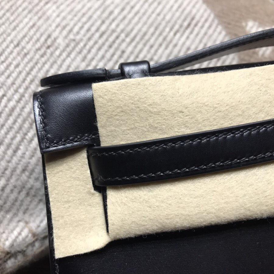 愛馬仕迷妳凱莉手包Hermes mini kelly box nior CC89 黑色 金扣金屬手拿包