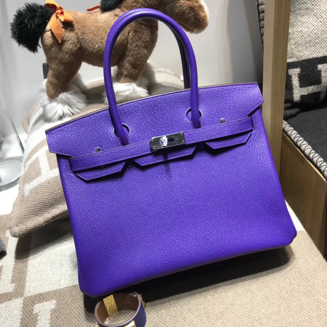 Hermes愛馬仕最出名的包袋Birkin 鉑金包 以法國的女歌星Jane Birkin命名的包袋.Hermes鉑金包birkin 30cm山羊皮chevre myzore 兩拼 P9 Anemone海葵紫/內裏5R艷桃紅 銀扣Vip尊貴馬蹄印 金銀扣五金金屬