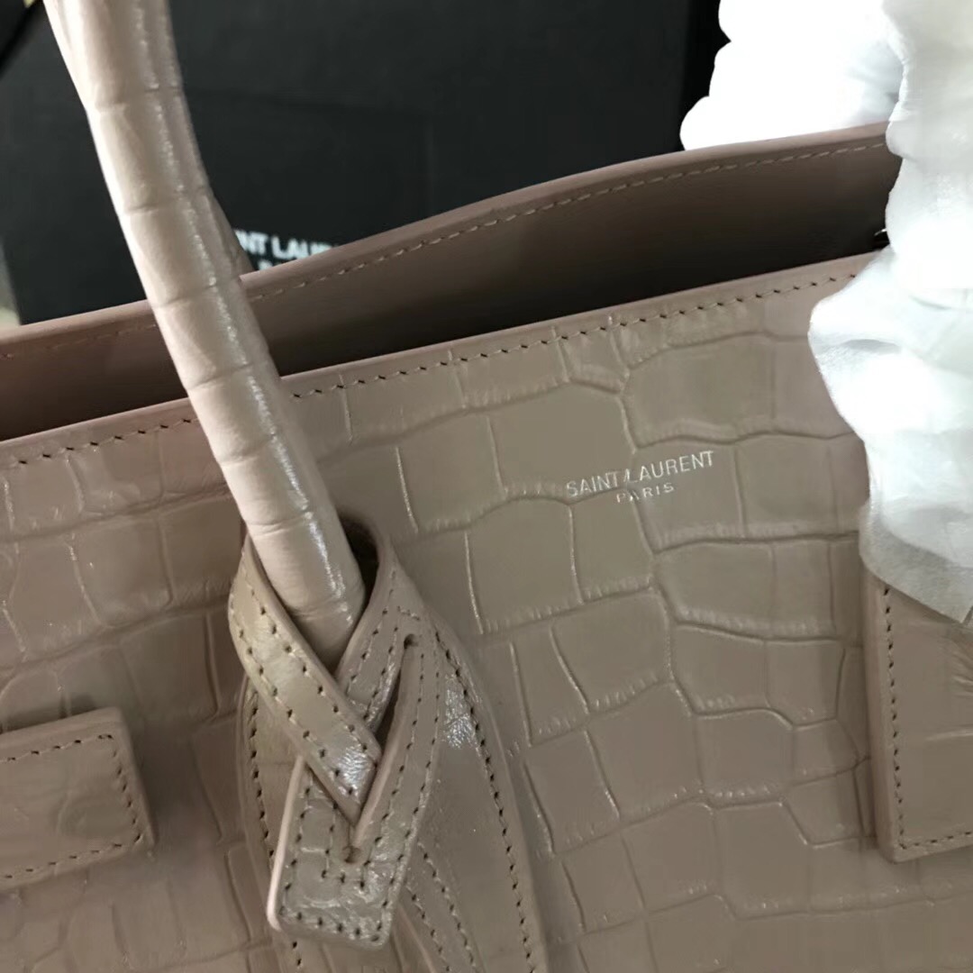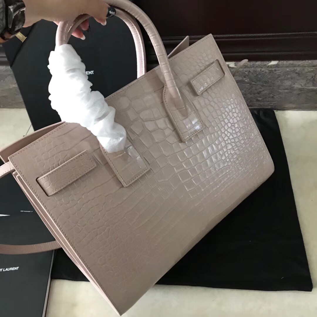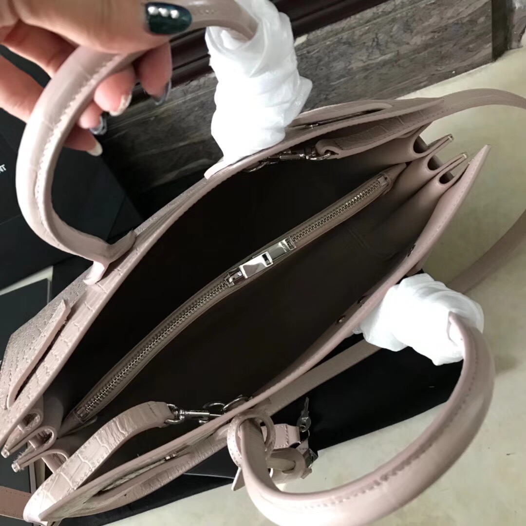 YSL 小號SAC DE JOUR SOUPLE 粉色鱷魚壓花真皮包