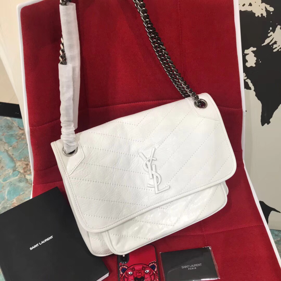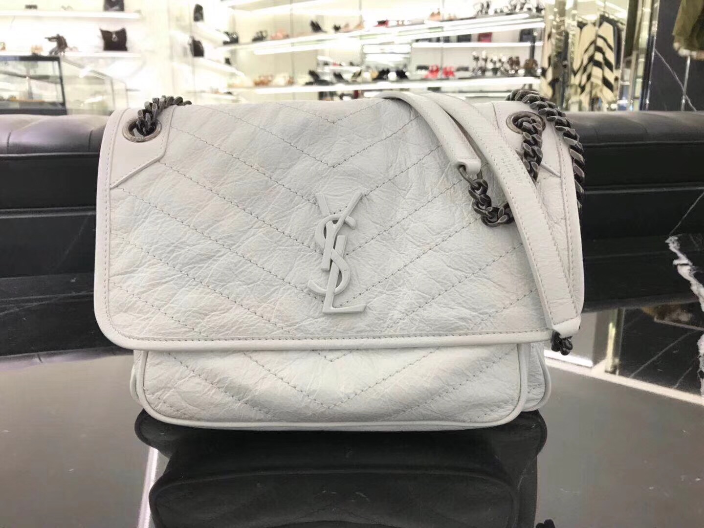YSL 白色 Niki bags medium niki chain bag in crinkled and quilted pearl white leather