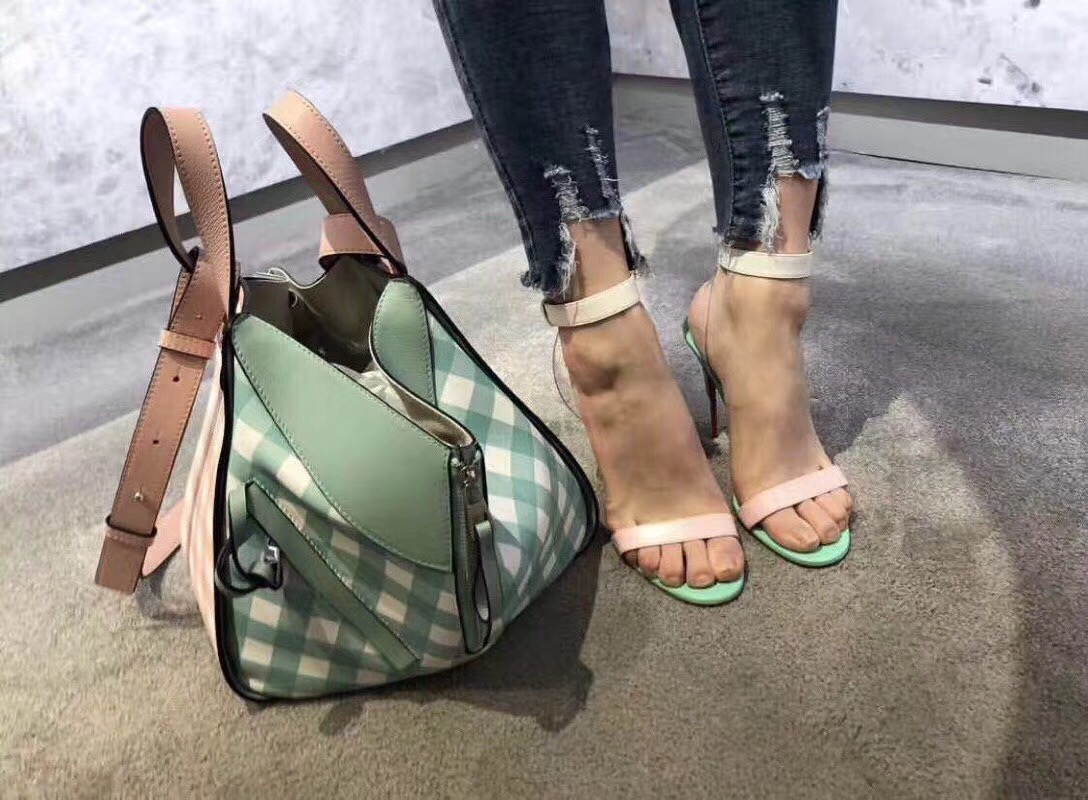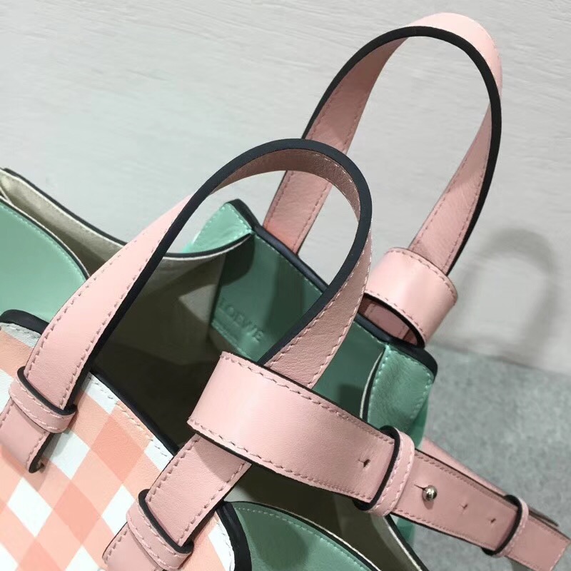 loewe 2018春夏系列 Hammock Gingham Small Bag Salmon/Sea-Water Green