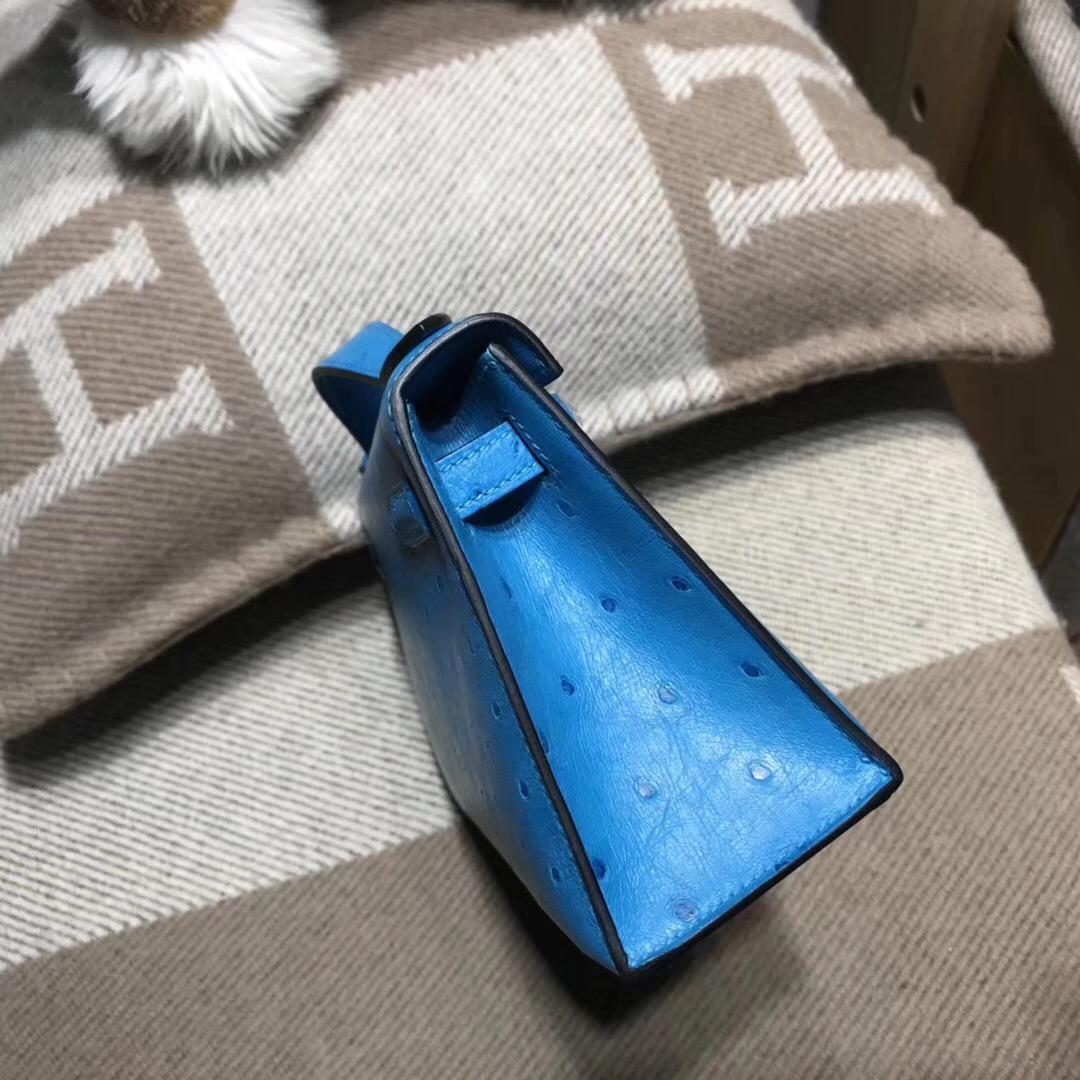 爱马仕Hermes mini kelly 鸵鸟皮 7B Turquoise松石蓝 优雅迷人的颜色 银扣金屬 手拿包