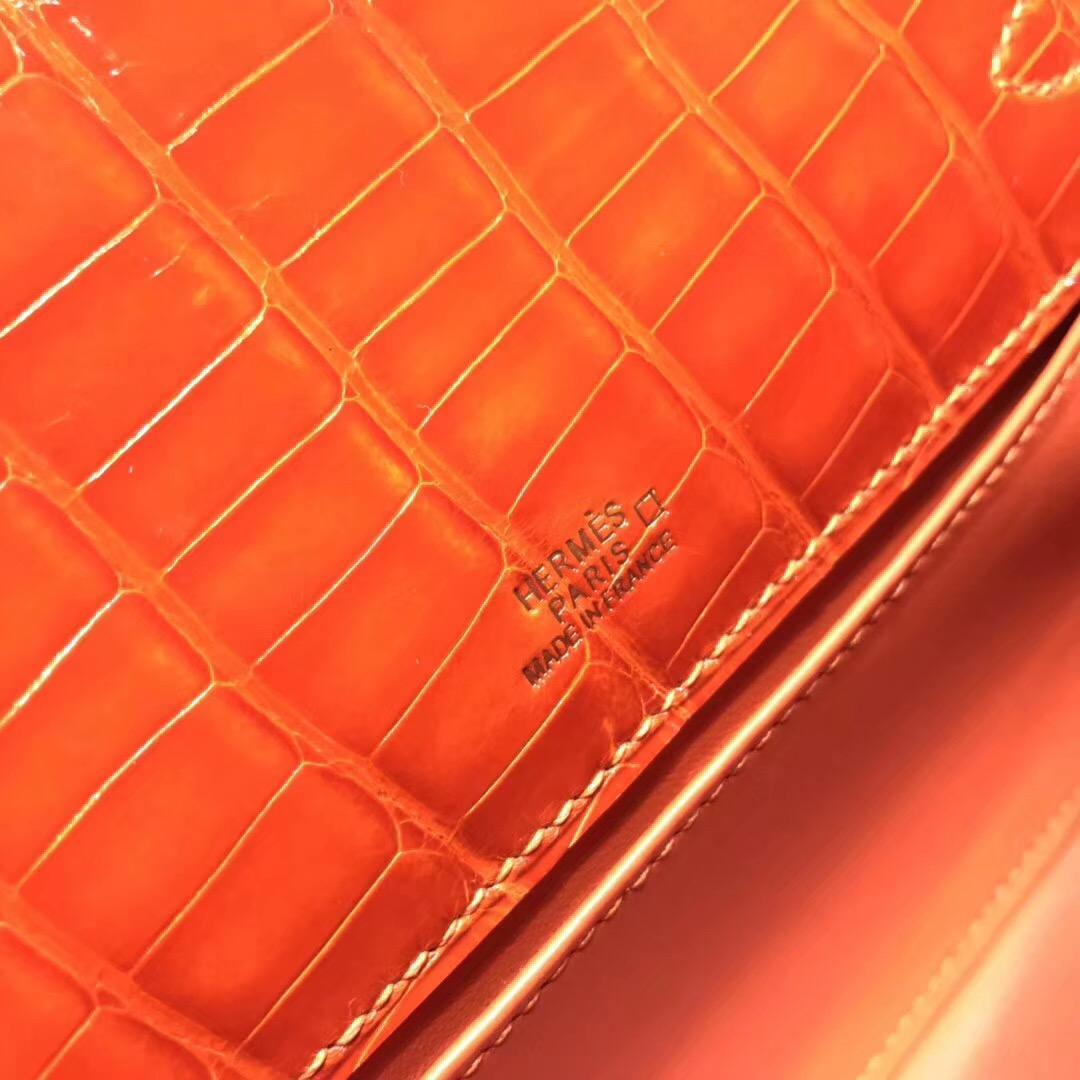 愛馬仕Hermes mini kelly 光面美洲鳄鱼皮革 9J Feu 火焰橙 金扣