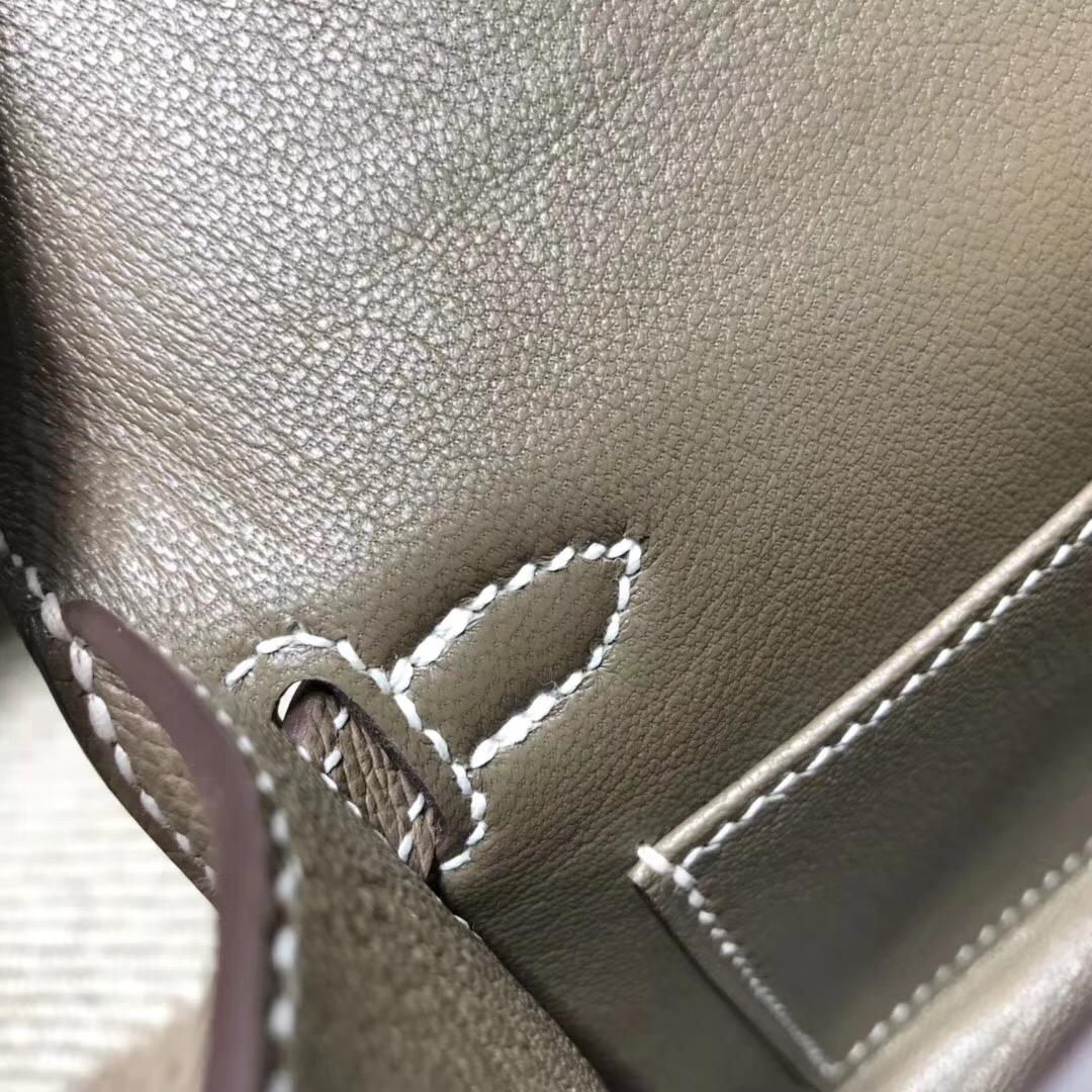 愛馬仕Hermes迷你凱莉包价格Mini kelly epsom CK18 Etoupe大象灰銀扣
