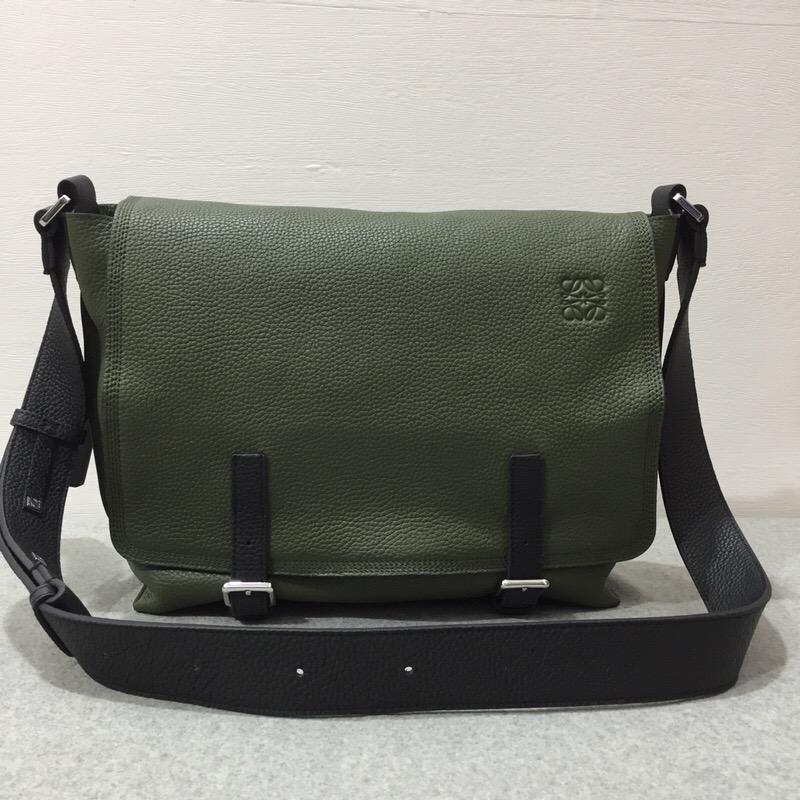 經典郵差包款的完美演繹,在簡約精美而又不失硬朗氣質的廓形中蘊含實用功能。這款全皮手袋選用柔軟粒面小牛皮精制而成,頂部折疊翻蓋配有皮革包覆磁扣和雙搭扣設計。主要特點:四排車線勾勒翻蓋,T形金屬配飾,黑色手工油邊,無襯裏,內有兩個插袋,背面壹個拉鏈口袋格外方便,可調肩帶,同色系Anagram圖案壓花。