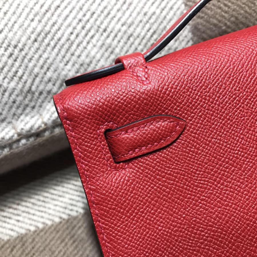 愛馬仕迷妳凱莉包 Hermes Mini kelly Epsom Q5國旗紅 Rouge Cossacks 最受歡迎的紅色 銀扣金屬。