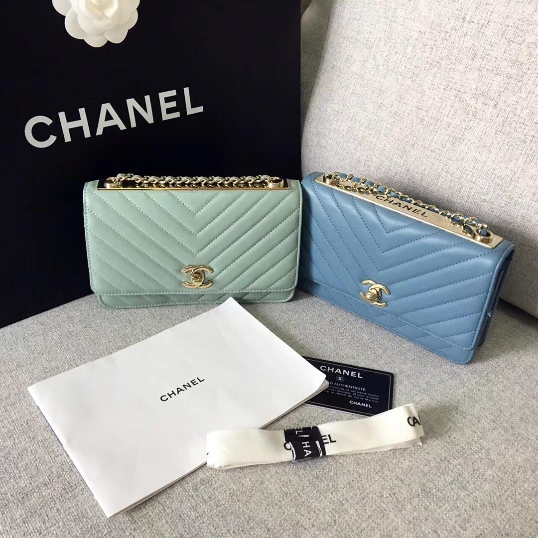 小香2018年款的新woc 鏈條小包 發財包 薄荷綠羊皮革與全鋼金屬