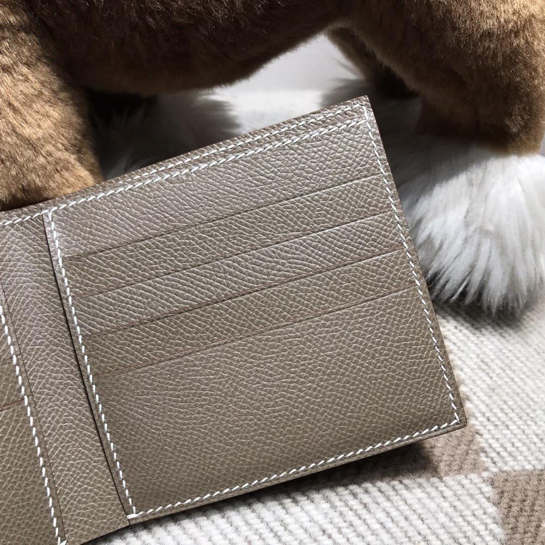 愛馬仕 Epsom bearn 短款兩折男士錢包 CK18 Etoupe 大象灰