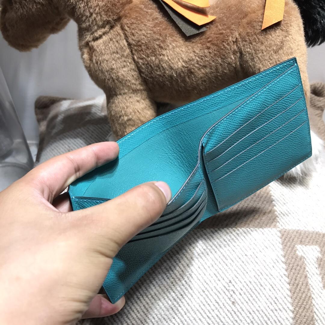 愛馬仕 Hermes Epsom bearn 短款兩折男士錢包 7F孔雀藍 Blue Paon