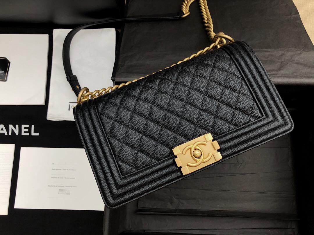 香奈兒 Le boy 圖片價格口蓋包 黑色顆粒壓花 水洗胎牛皮與沙金五金金屬