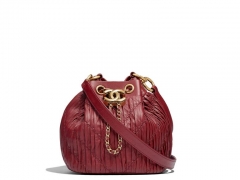 Chanel官網2018春夏款 黑色折纹小牛皮 抽绳包black Drawstring bag
