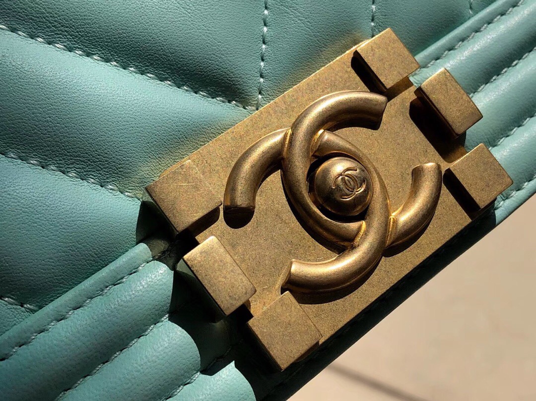 小香 薄荷綠GR小牛皮 Le boy bag 口蓋包V型車縫線 沙金五金金屬