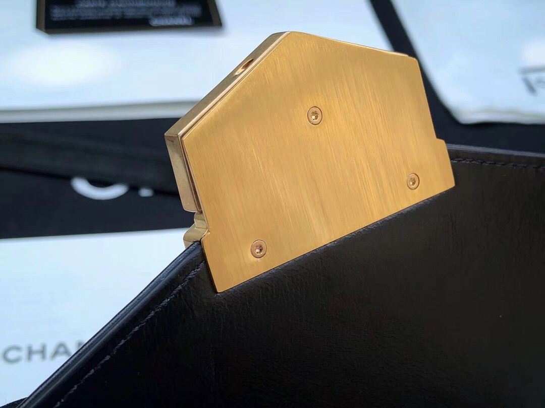 香奈兒 V縫線口蓋包 黑色小牛皮與沙金金屬鏈條包