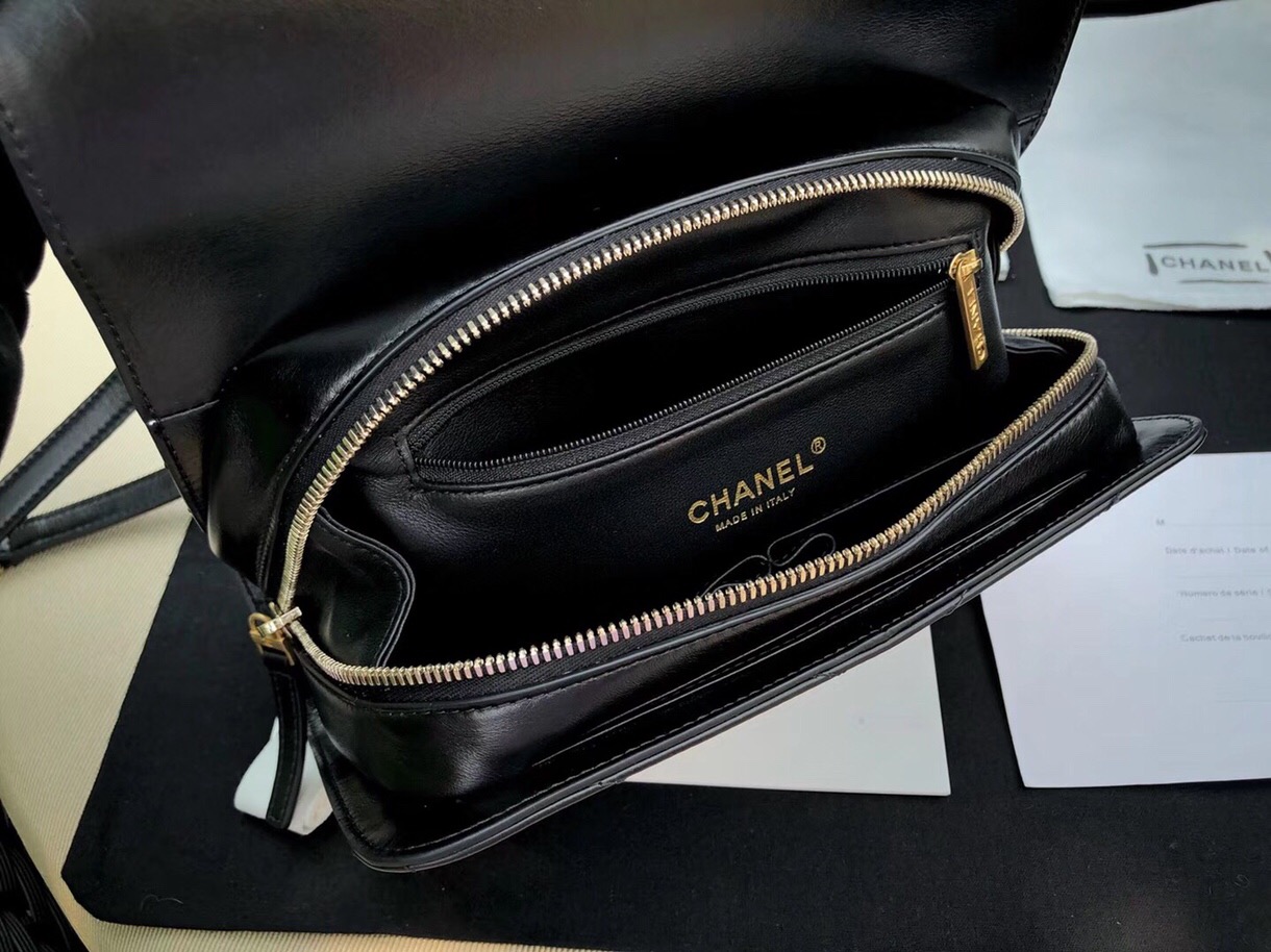 香奈兒 handbag 口蓋包配以手柄 黑色小羊皮 配鏈條金色金屬