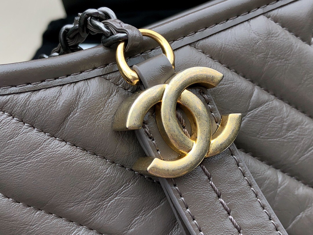 香奈兒GABRIELLE流浪包 V型車縫線 復古小牛皮、銀色與金色金屬