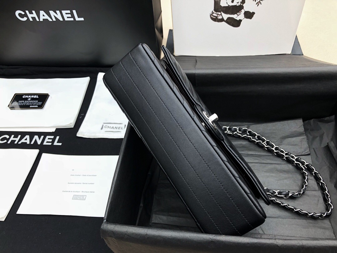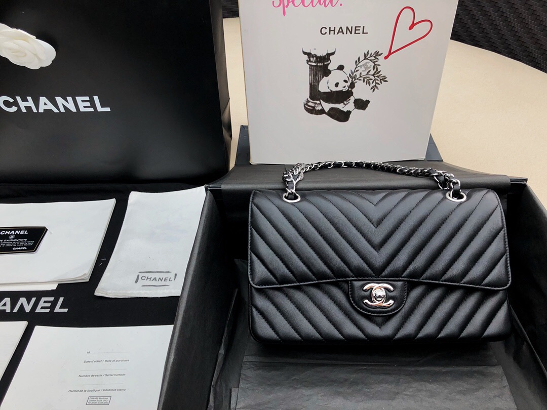 香奈兒Classic Flap Bag 黑色小羊皮菱格鏈條經典口蓋包 V型車縫線 银色金屬