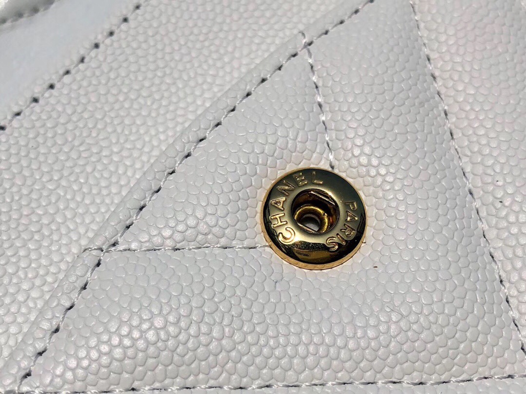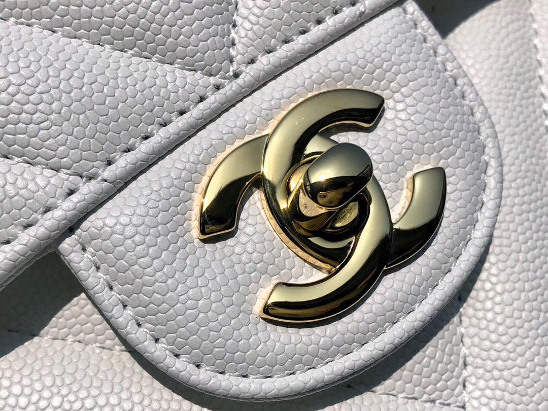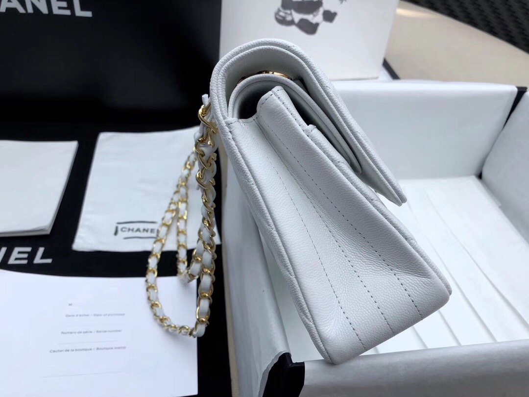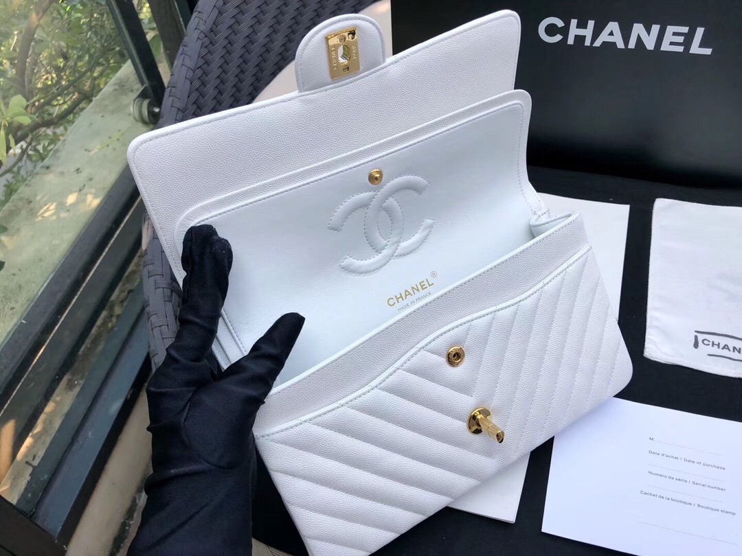 香奈兒V型口蓋包 Classic Flap Bag 冰雪白色小牛皮V型車縫線 金色金屬