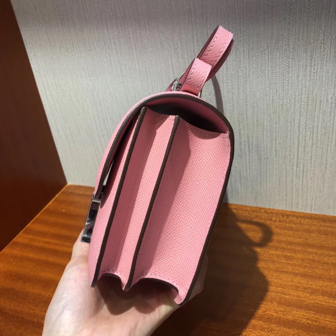 愛馬仕康康空姐包 康斯坦斯包尺寸價格 Hermes 1Q奶昔粉 Constance 18cm 銀扣 Epsom手掌紋禦用頂級原廠皮