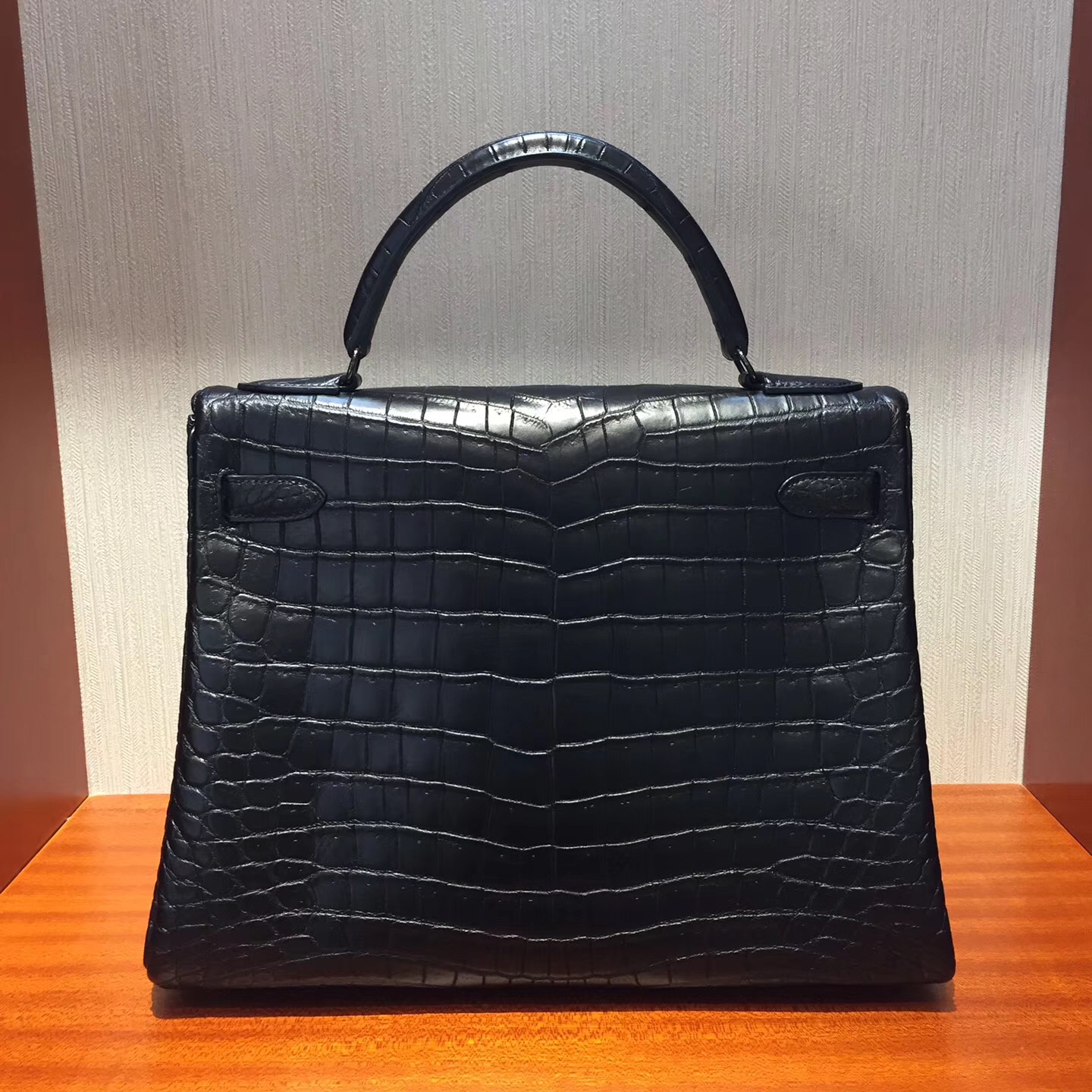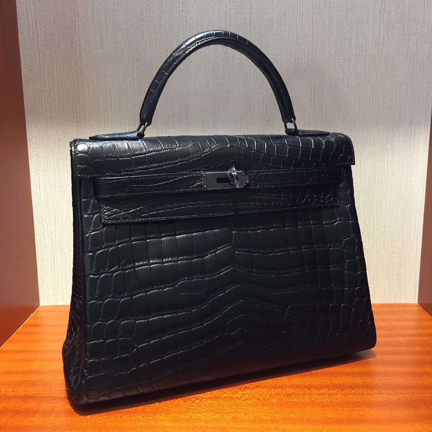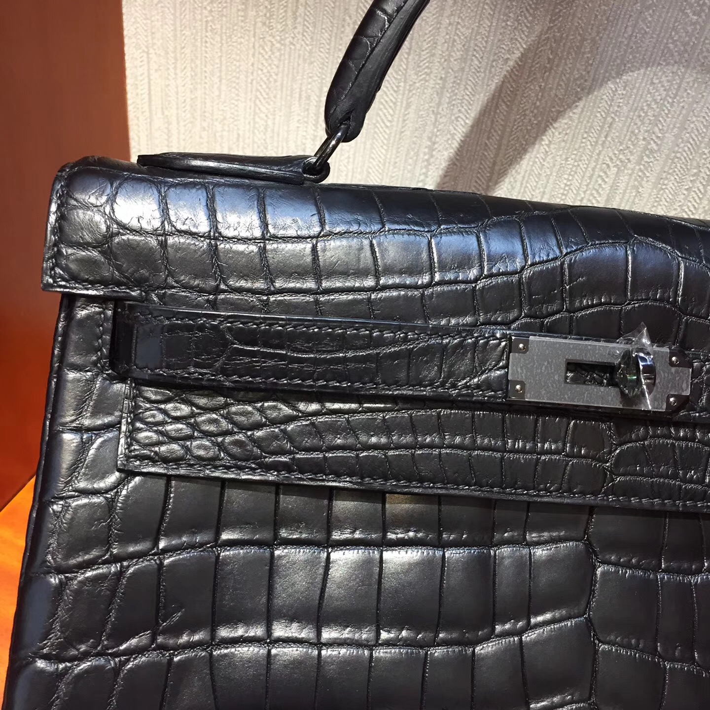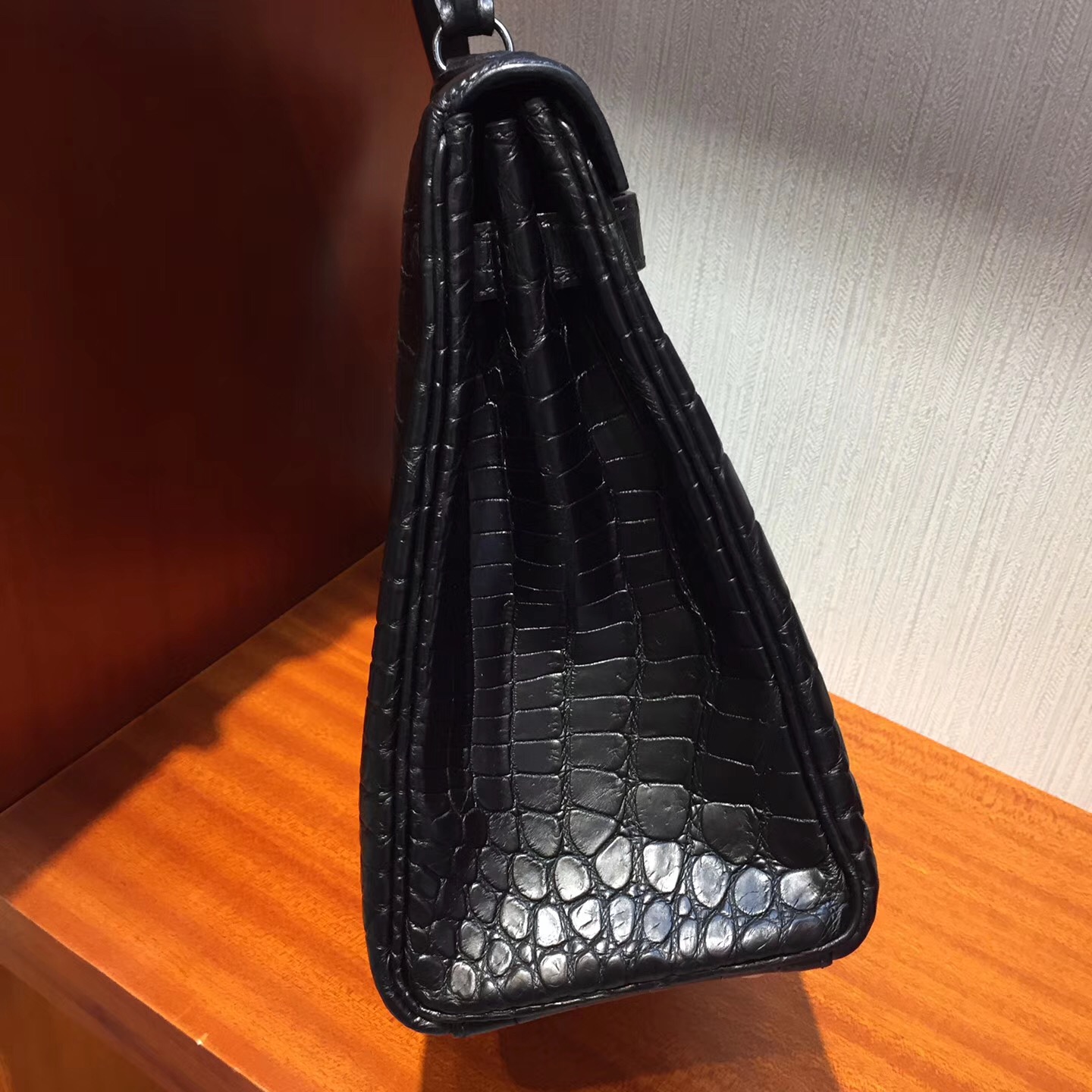 愛馬仕包包 鱷魚凱莉包 Hermes Kelly 32cm Bag CK89黑色槍扣 霧面兩點鱷魚 Matte nilo crocodile so black 全手工臘線縫
