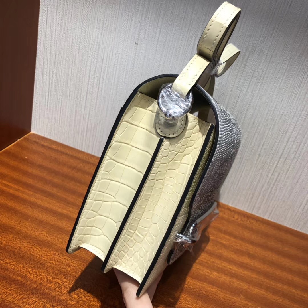 愛馬仕豬鼻子包 Hermes Roulis 19cm Y1香草色美洲鱷魚拼自然色蜥蜴 完美品相