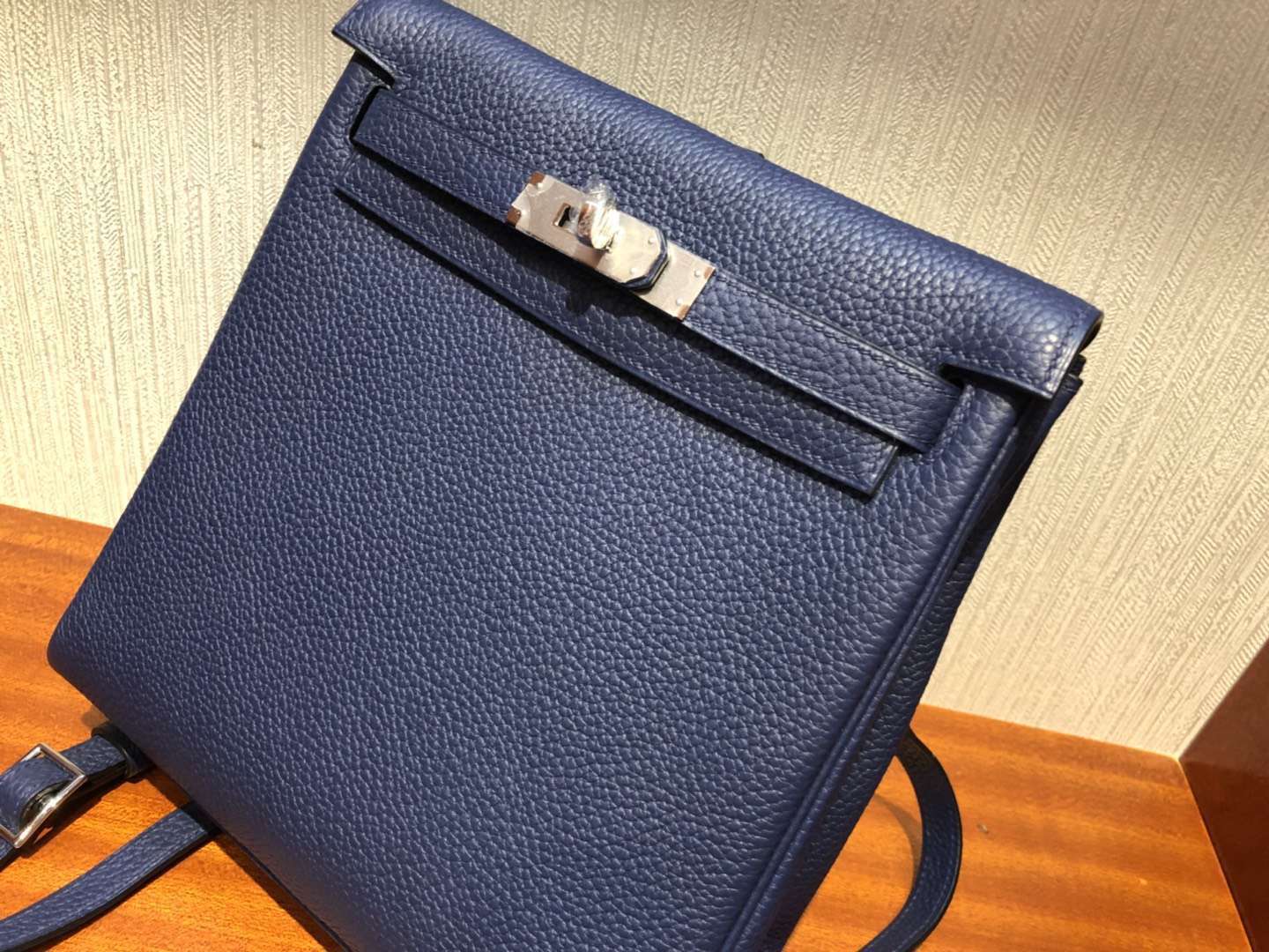 愛馬仕凱莉雙肩包 Hermes Kelly Ado Backpack 凱莉雙背包 寶石藍 22cm 原廠禦用 taurillon Clemence 皮 全手工蠟線縫 小書包 背包