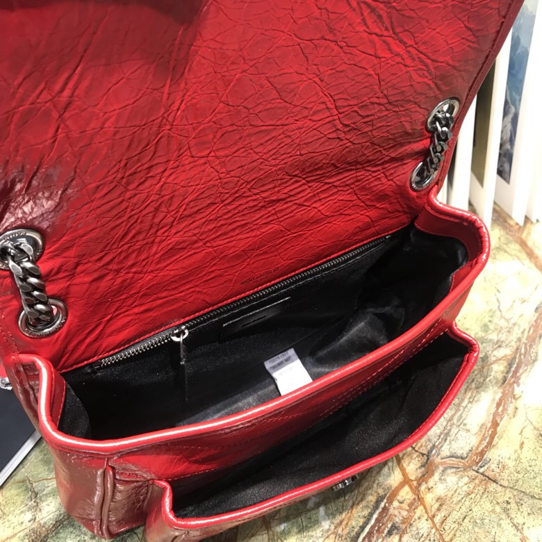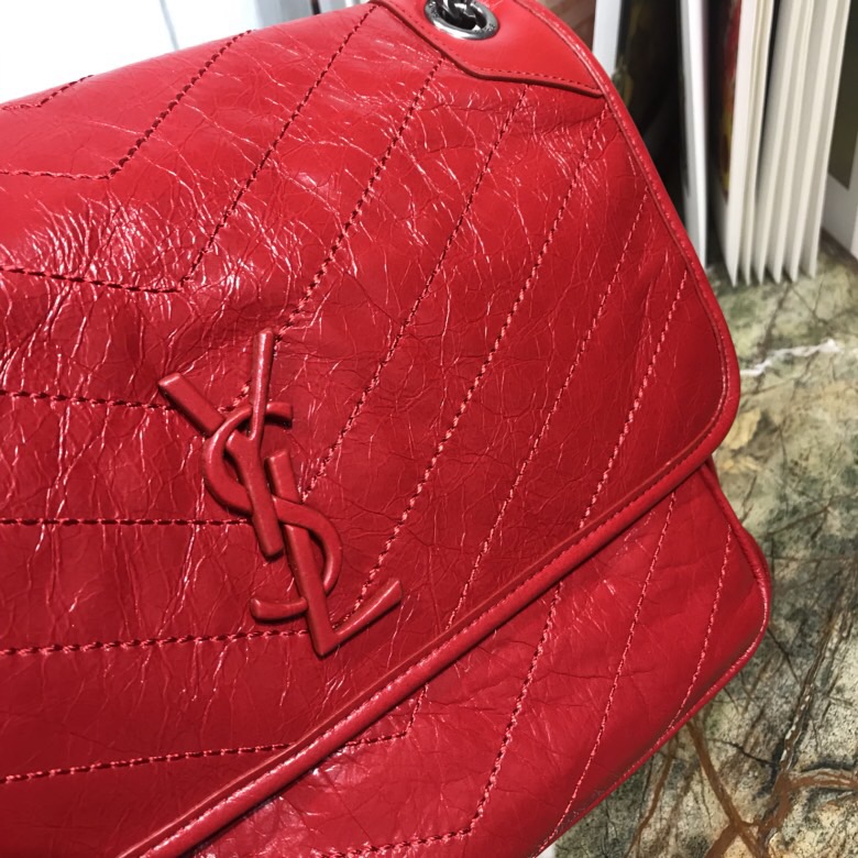 YSL Niki 中号 大号正大红色褶皺絎縫真皮鏈條包