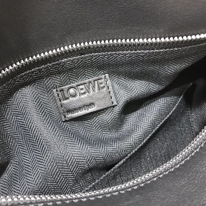 The first completely new bag designed by Jonathan Anderson has become a LOEWE icon. With its innovative cuboid shape, extreme tactility and maximum utility, volume is created through precise cutting. Puzzle can be worn in five different ways from shoulder bag to clutch, plus it folds completely flat. Its geometric silhouette is accentuated with thick black graphic outlines. Key features: crafted from Classic Calfskin, Black hand-painted edges , Herringbone-patterned Cotton-Canvas lining, two interior slit compartments, handy back zip pocket, anagram embossed to tone, hardware: Palladium