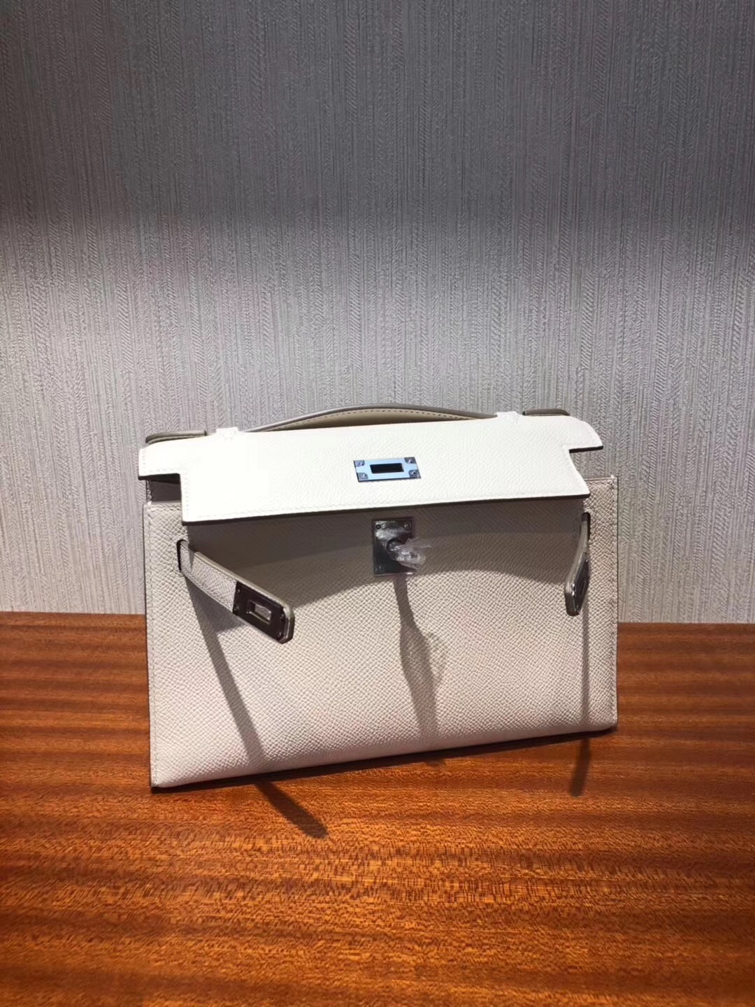 愛馬仕官方網站旗艦店 Hermès Kelly Pochette Swift 純白 White 銀扣