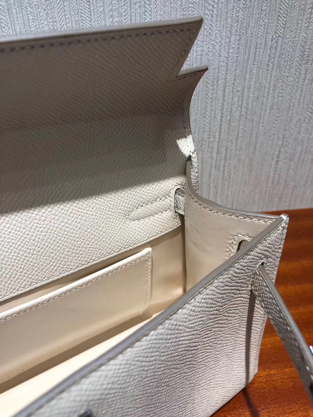 愛馬仕迷妳凱莉包壹代 Hermes CK10奶昔白 MiniKelly Pochette 22cm Epsom 禦用頂級手掌紋 全手工蠟線縫 金扣 全手工蜜蠟線縫