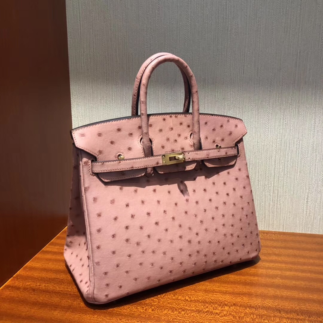 愛馬仕馬來西亞吉隆坡專賣店 Malaysia Hermes Birkin Bags 25cm CK94陶瓷粉 TerreCuite 南非KK鴕鳥皮 金扣金屬 全手工蜜蠟線縫