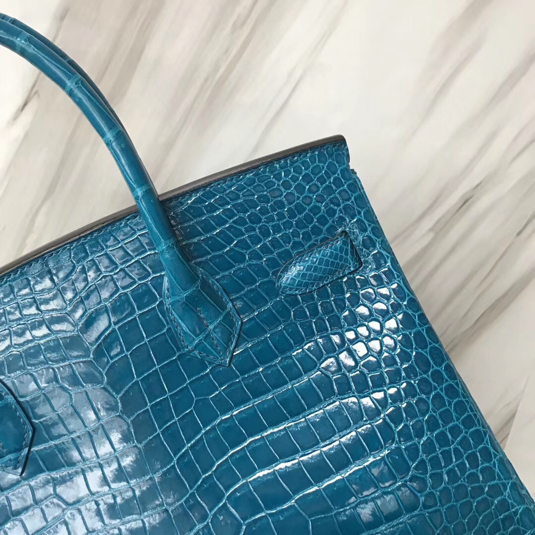 愛馬仕溫哥華巴拉德大街專賣店 Hermes Birkin 30cm Shiny porosus crocodile 亮面倒V 野生灣鱷 7W伊茲密爾藍 Blue izmir 完美品相 氣孔明顯 金扣 現貨 Goods in stock More colors can be customized