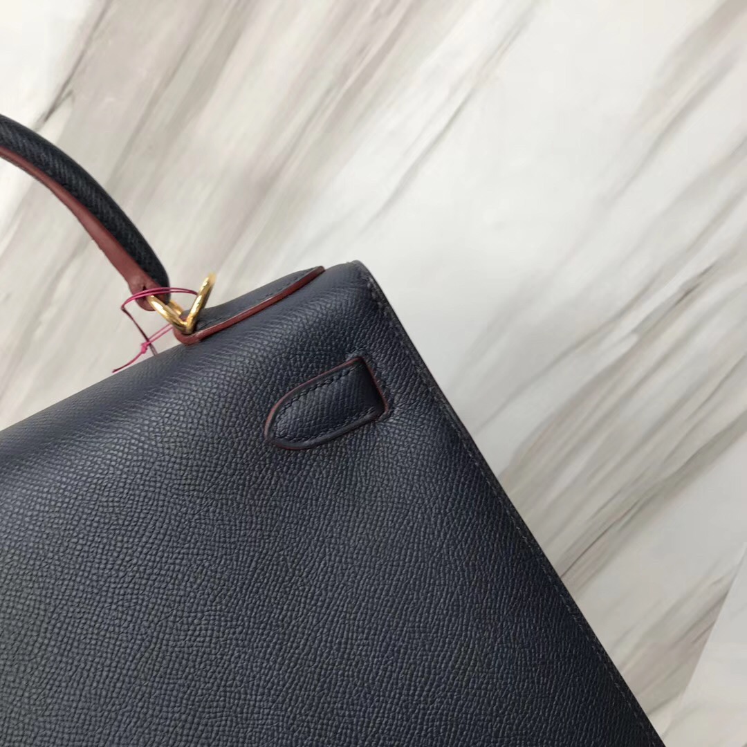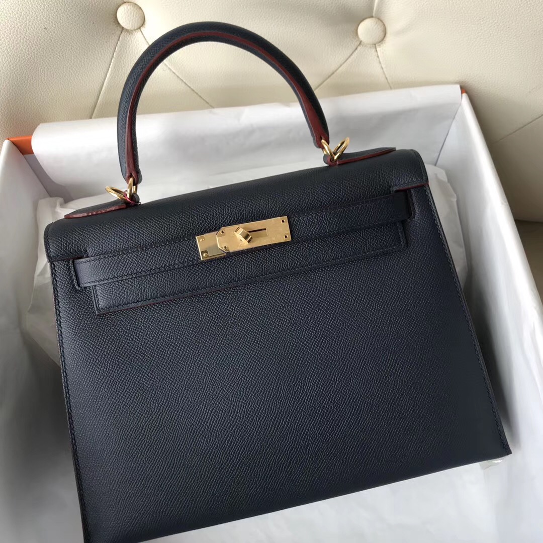 臺灣臺中市愛馬仕凱莉包包 愛馬仕包包價格 Hermes Kelly Bag 28cm CK76深海藍 Blue indigo Epsom手掌紋牛皮 金銀扣 全手工蠟線縫