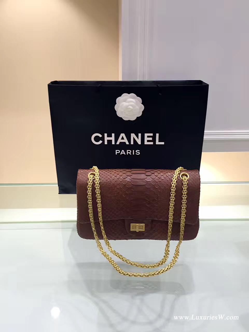 小香經典款女包大號Large 2.55 handbag口蓋包復古五金 咖啡真蟒蛇皮