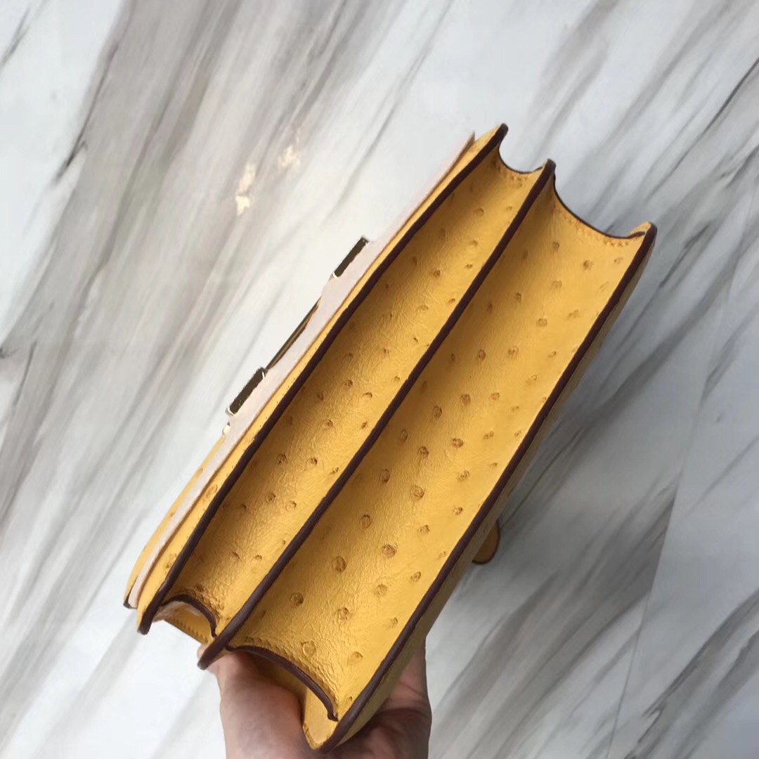 新加坡愛馬仕康康空姐包包价格 Singapore Hermes Constance 19cm Ostrich 禦用原廠KK南非鴕鳥皮 9D琥珀黃 Jaune Amber 金扣 全手工蜜蠟線縫制