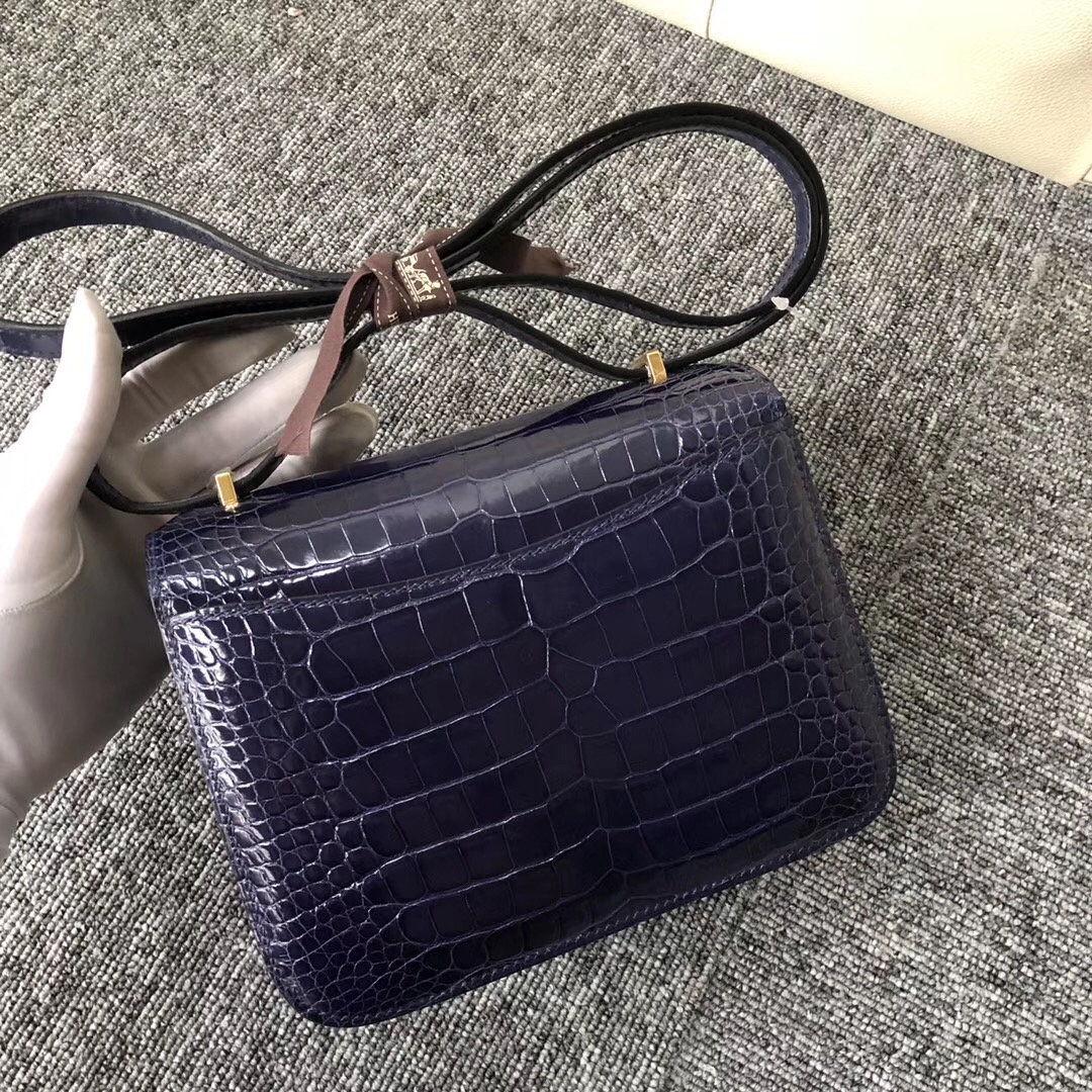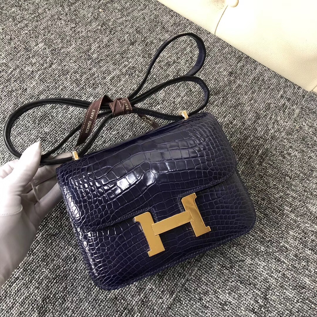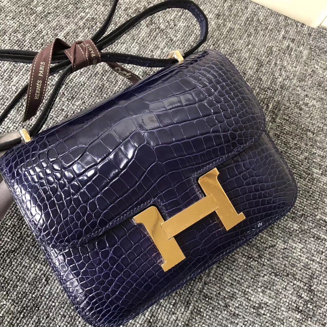 韓國愛馬仕首爾新世界百貨江南店專賣店 South Korea Hermes Constance 19cm 亮面方塊 美洲鱷魚 Shiny alligator crocodile 7E明藍色 Blue Brighton 金扣 現貨壹枚