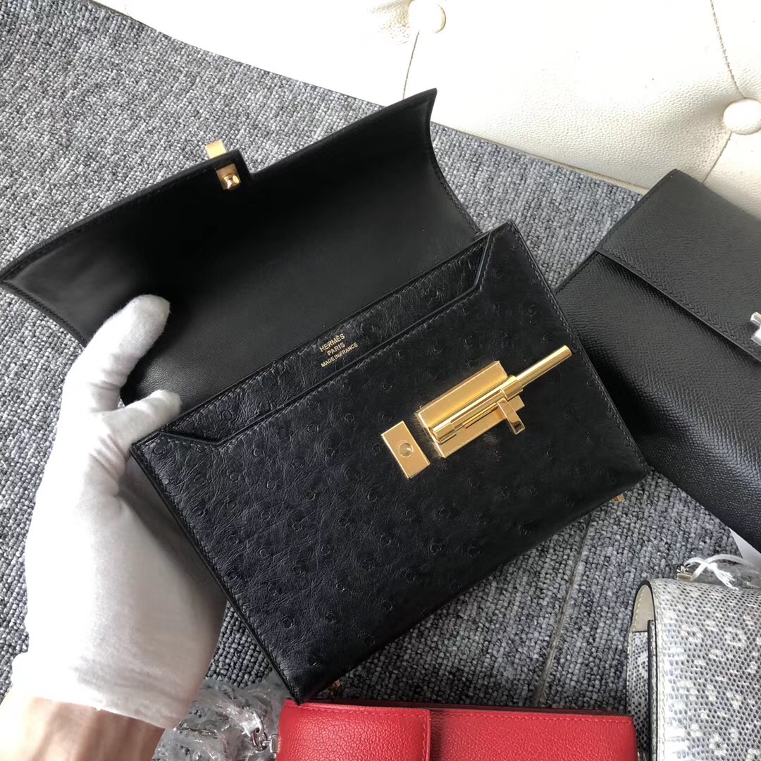 澳洲愛馬仕插銷包尺寸有哪幾種 Australia Hermes Verrou 17.5cm CK89黑色 Ostrich 御用原厂kk 南非鸵鸟皮 手槍包 禦用進口蜥蜴皮 全手工蜜蠟線縫 銀扣