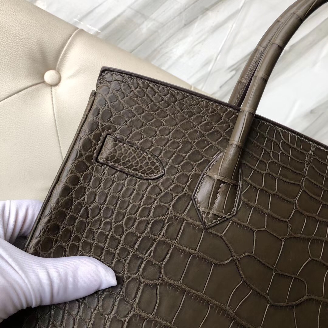 香港深水埗區愛馬仕鉑金包定制圖片及價格 Hermes Birkin 30cm M1新大象灰 Oregano 霧面方塊 美洲鱷魚 Matte alligator crocodile 銀扣 客定出貨